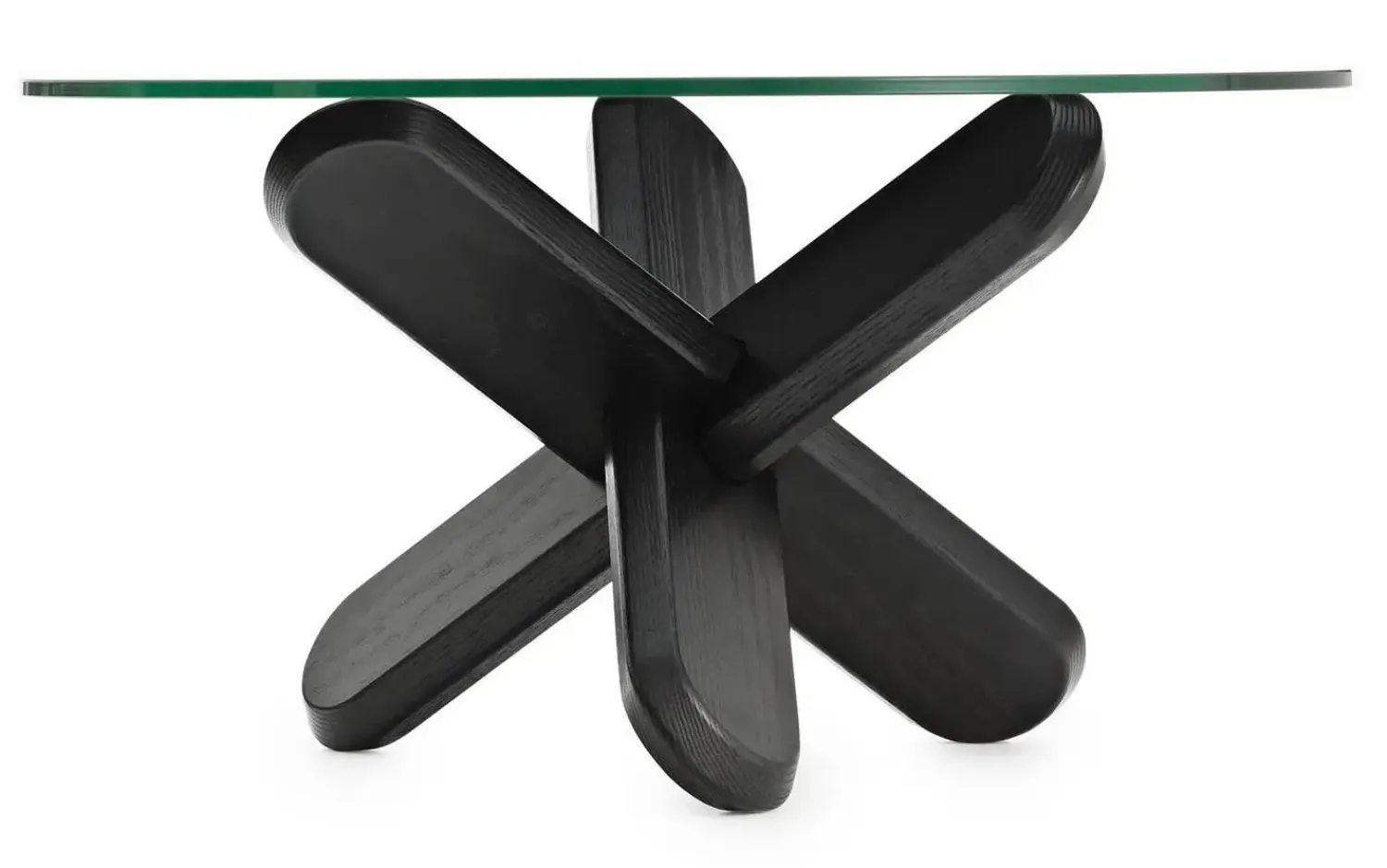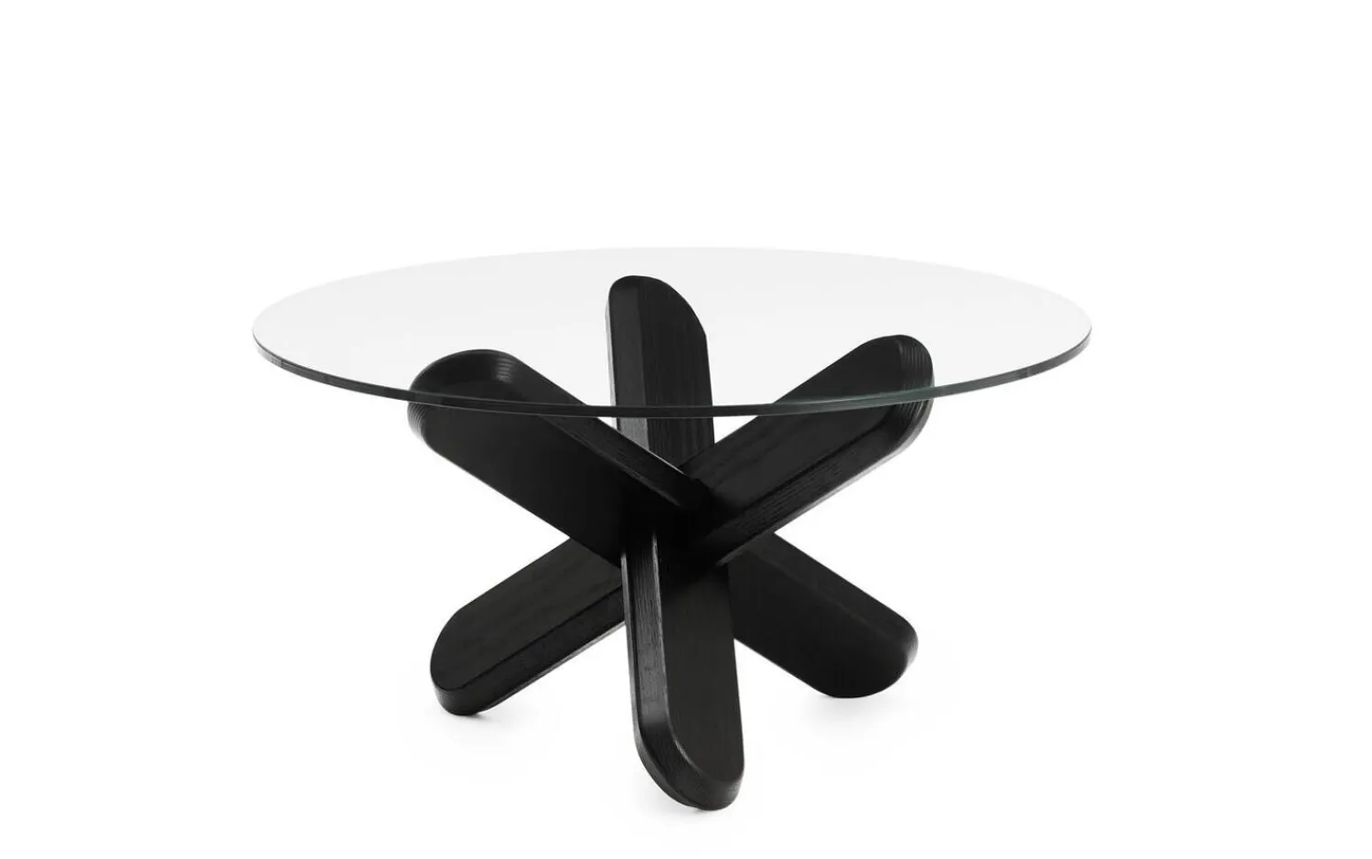 Ding-bordet er inspireret af ældgamle tredimensionelle hjernetrim-puslespil i træ. Bordet består ganske enkelt af tre ben lavet af egetræ, der er samlet uden skruer og værktøj af nogen art. Når de er sat sammen udgør de en skulpturel knude, der fungerer som basis for en eksklusiv glasbordplade. Benene er afrundet med affasede kanter, hvilket får bordet til at stå solidt på gulvet og den runde glasplade sidder solidt på bunden. Ding bordet fås med enten klar eller røget glas bordplade, og med valg af tre forskellige bentyper er der rig mulighed for at finde lige præcis den stil, der passer til din indretning og smag. Du kan for eksempel kombinere en klar glasbordplade med ben i natur for et rent og nordisk udtryk, eller skrue op for intensiteten med en røget bordplade i fede koralfarvede eller markante sorte ben.