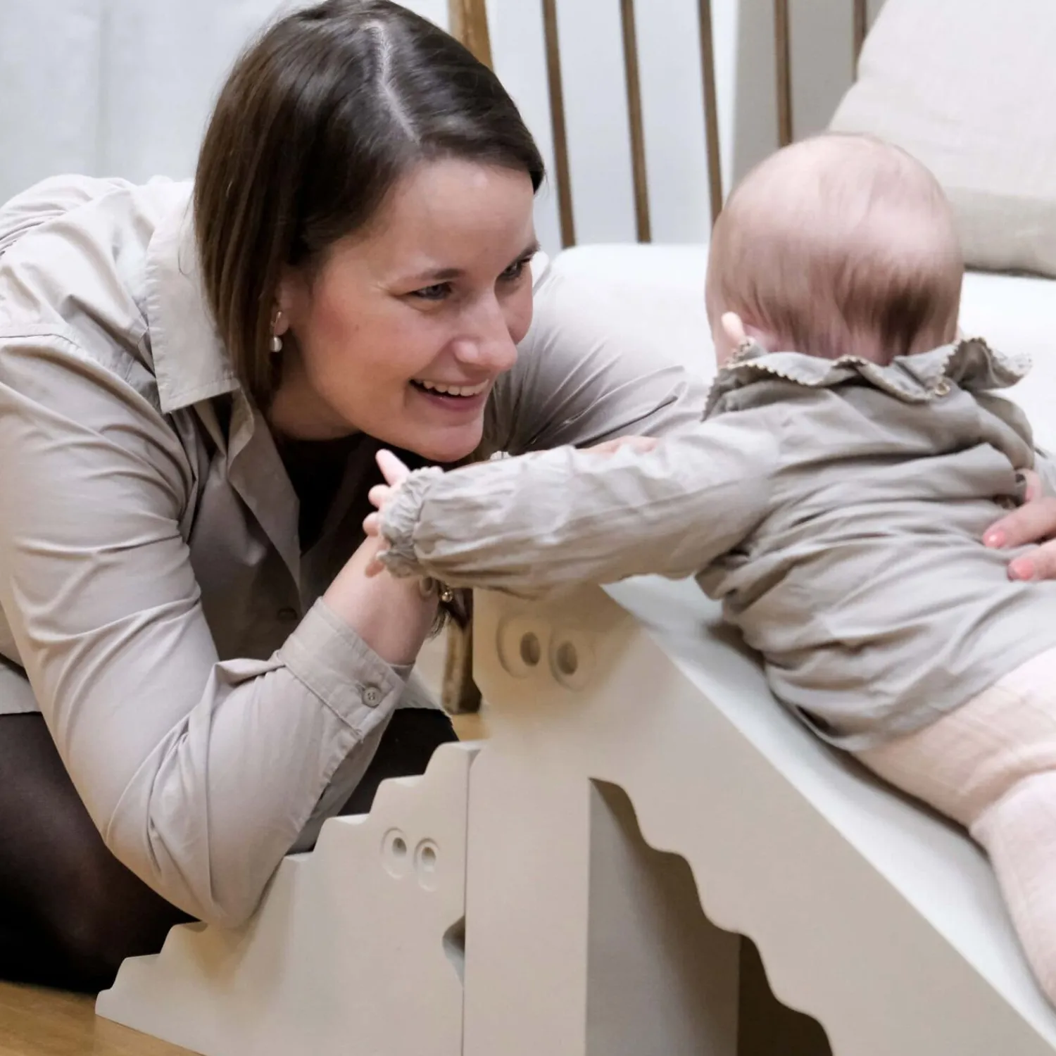 Dino fra bObles er et multifunktionelt legemøbel, der fungerer som rutsjebane, klatrestativ og skammel. Den sandgrå nuance passer ind i de fleste hjem, og den bølgede trappeform inviterer til aktiv leg og motorisk udvikling for børn.