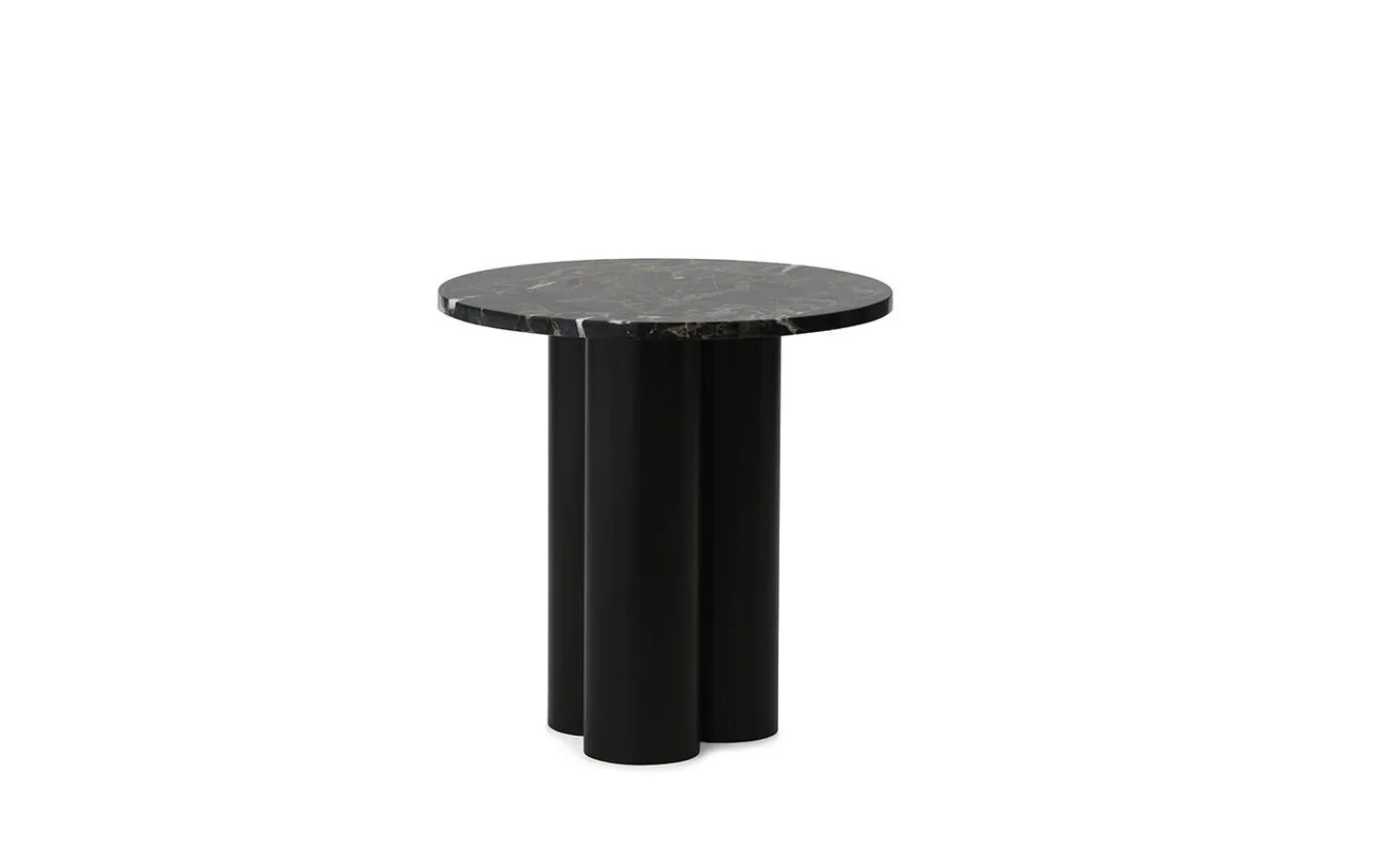 Den 2 cm tykke stenbordplade er ikke kun smuk at se på; den er også utroligt holdbar og modstandsdygtig over for daglig brug. De tre cylindriske ben i pulverlakeret stål sikrer optimal stabilitet og giver bordet et karakteristisk udtryk.