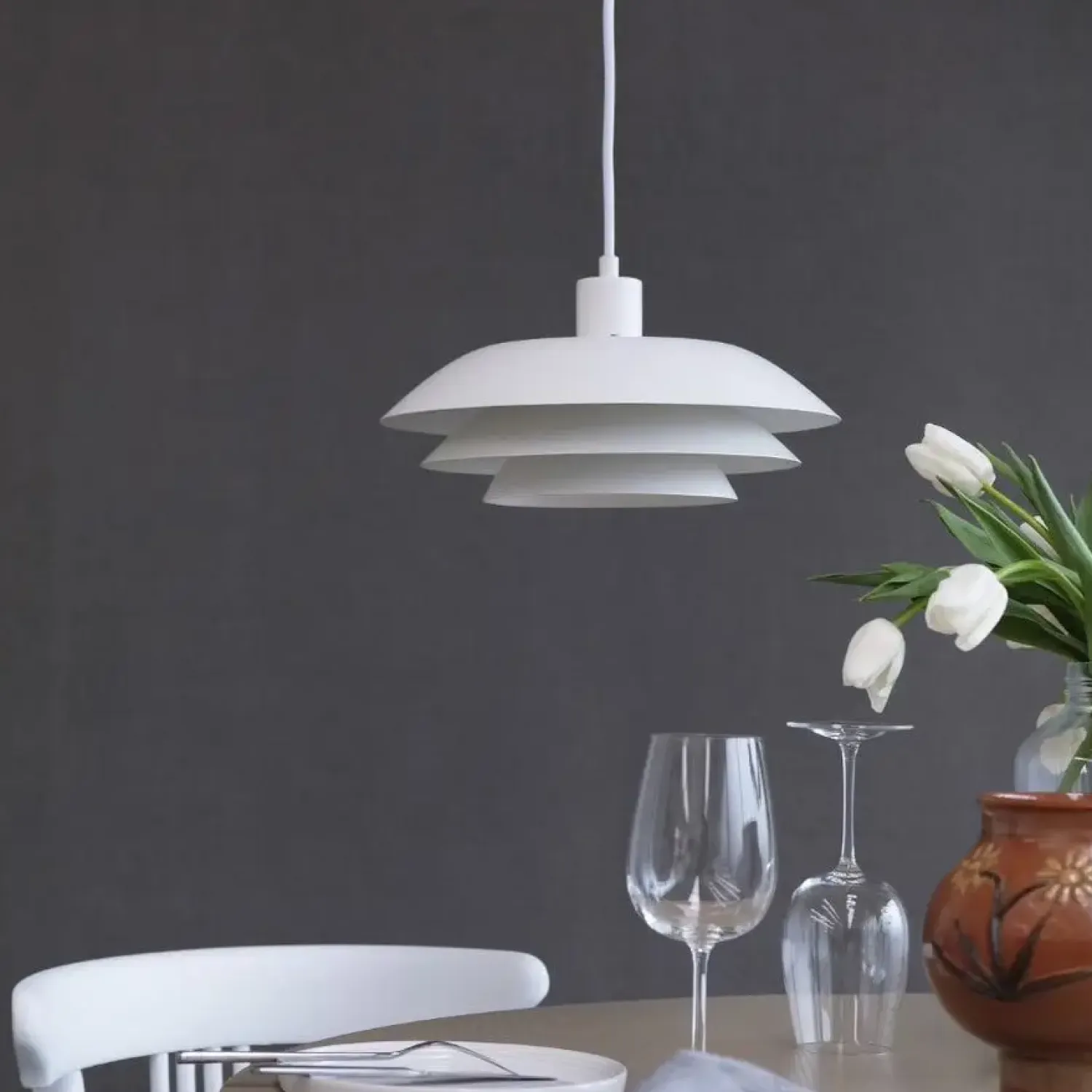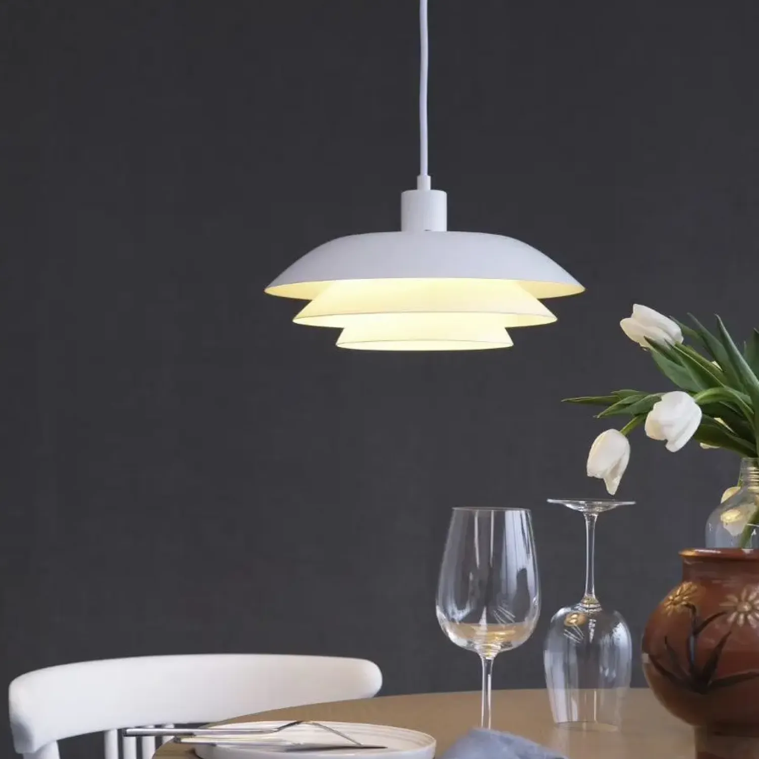 Pendel i enkelt design fra Dyberg Larsen. Det nye lampedesign fra Dyberg Larsen er med sit klassiske design en lampe der er inspireret af enkle og rene linjer. DL31 lampeserien harmonerer flot med alle stilarter og giver et fantastisk flot lys. DL31 pendlen er klassisk i hvid og er perfekt over spisebordet, køkkenbordet eller det lille hjørnebord. Dyberg Larsens nye lampedesign er tidløst og klassisk men samtidig med sit helt eget udtryk.