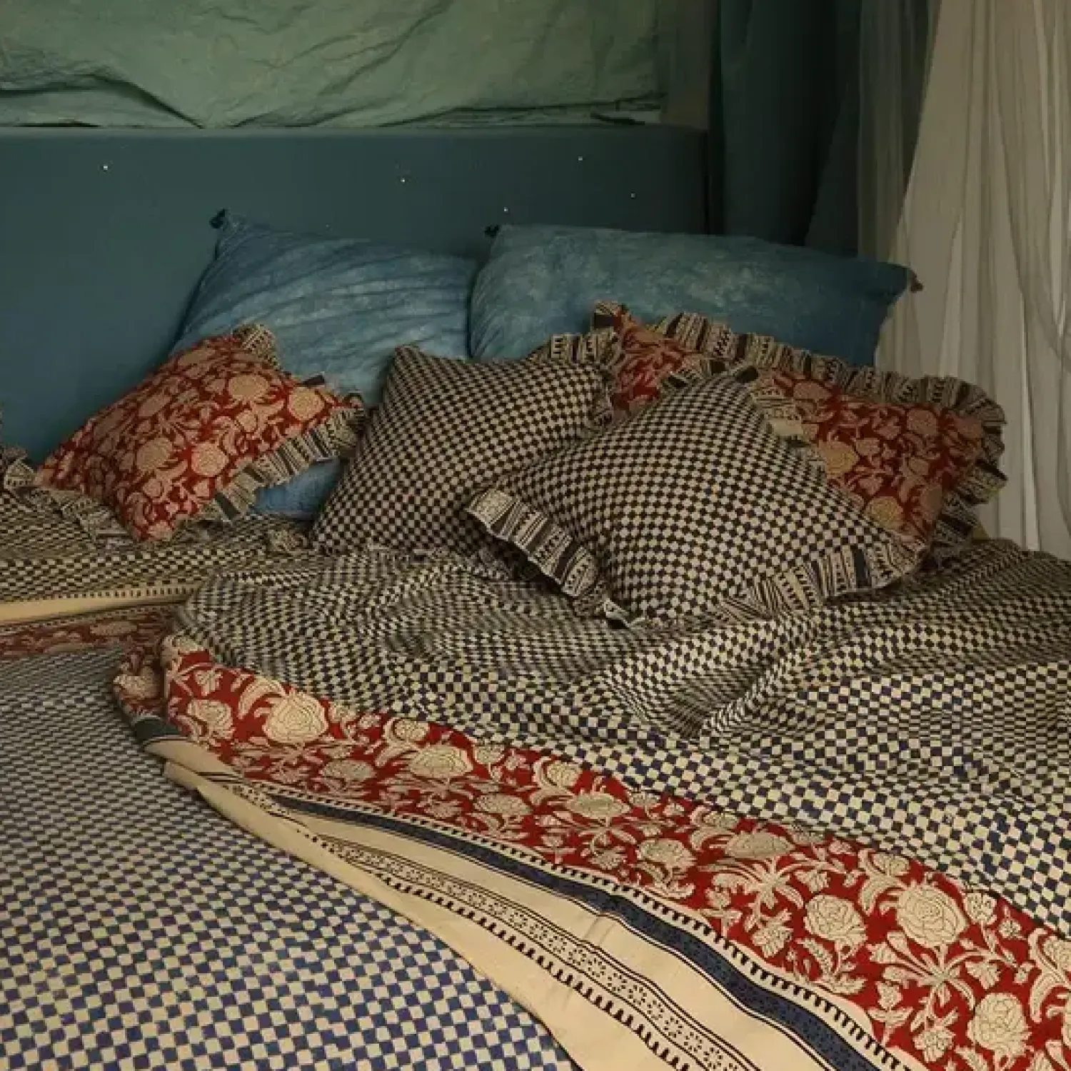Denne rumi Single Throw er trykt i hånden med udskårne træblokke og utroligt alsidig. Læg den over din seng, sofa eller tag den med på en picnic eller strandtur med dette smukke stykke. Den kommer med en matchende tote taske.