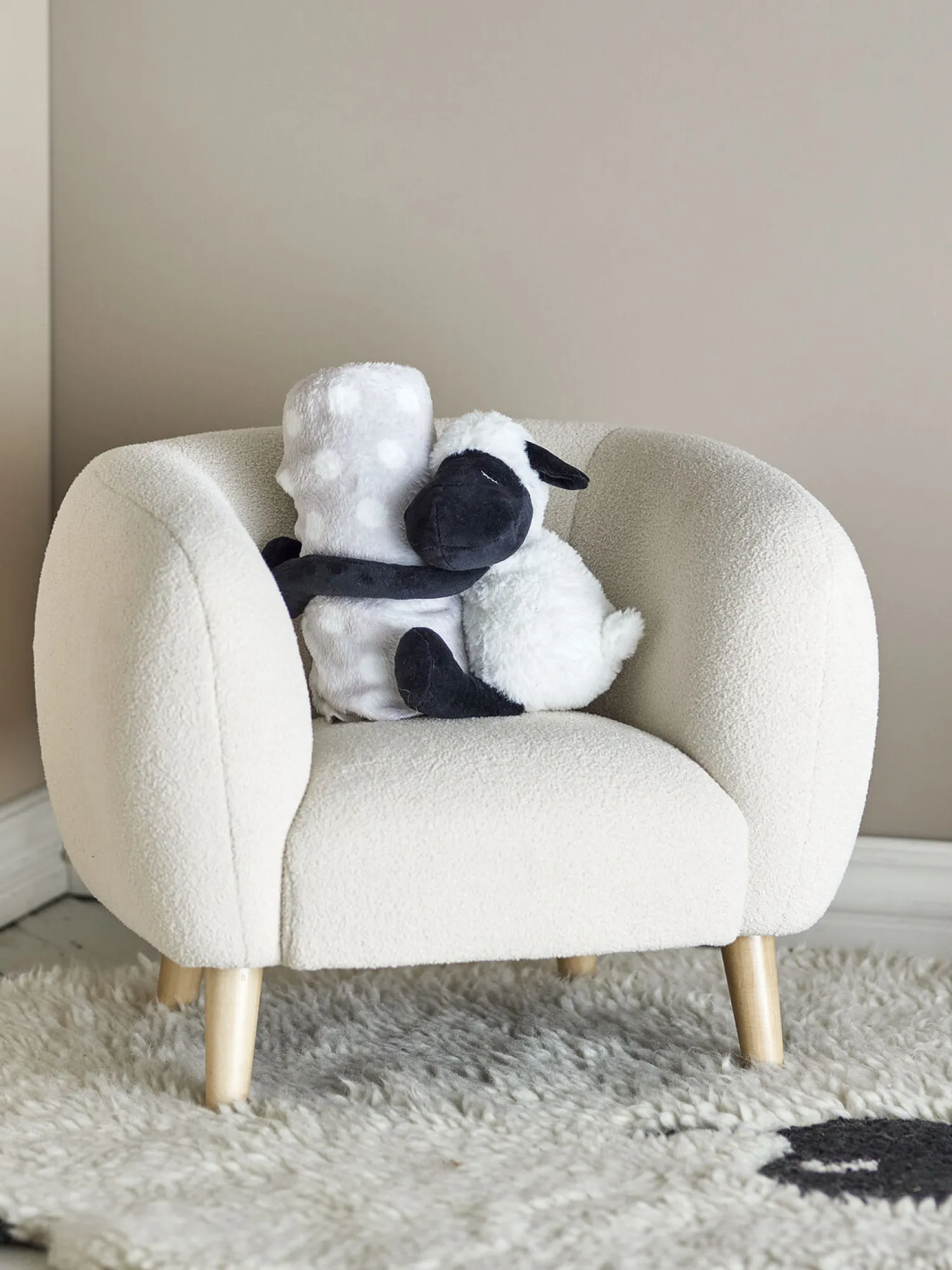 Du får to ens bamser i dette sæt, så du altid har en ekstra ved hånden. Den hvide farve passer til ethvert børneværelse, og den vævede finish giver et stilrent udtryk, der holder sig flot vask efter vask.