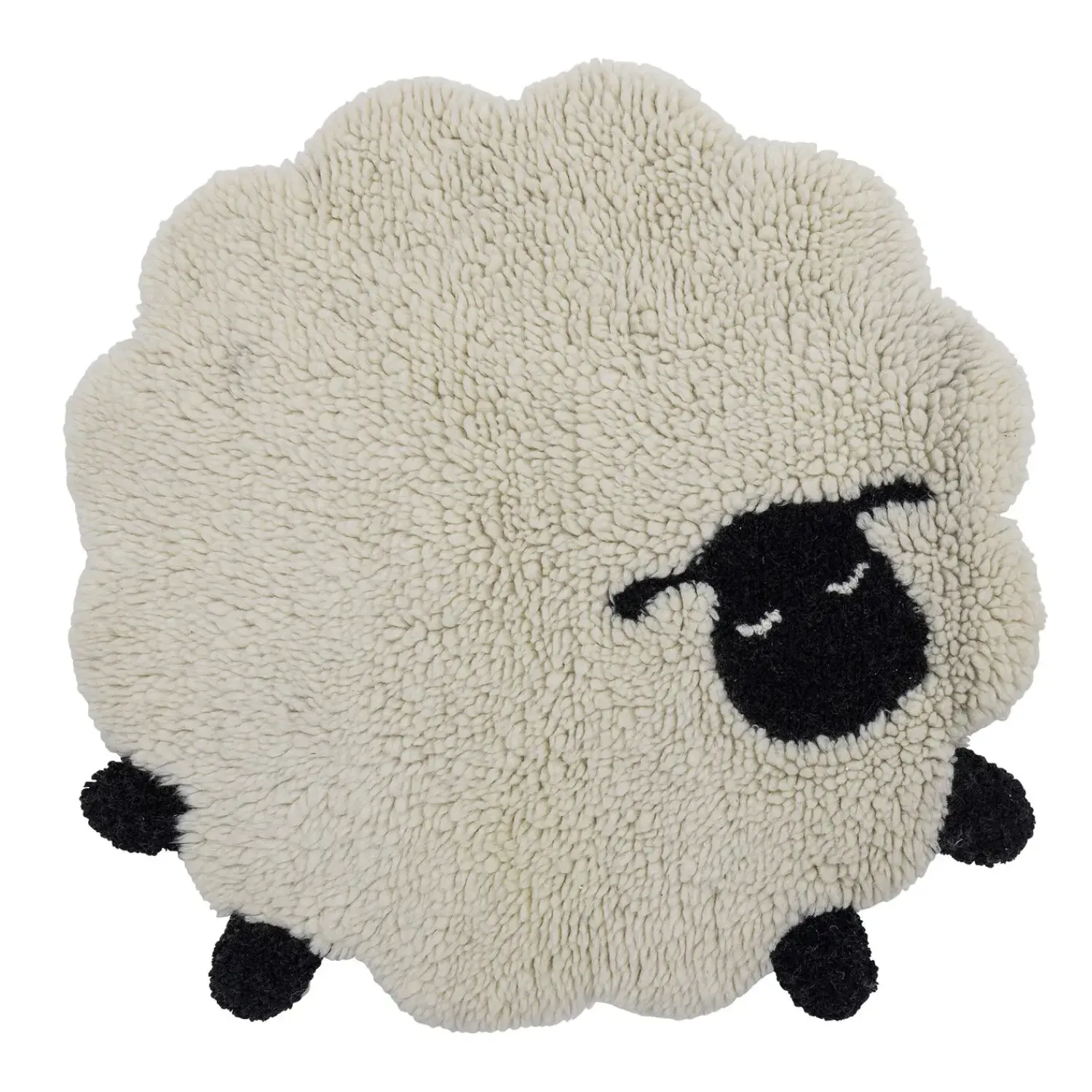 Dette runde tæppe fra Bloomingville bringer charme til børneværelset med sit søde fåredesign. Fremstillet af 100 % uld sikrer tæppet både komfort og holdbarhed, mens den vævede finish giver en behagelig tekstur at røre ved.