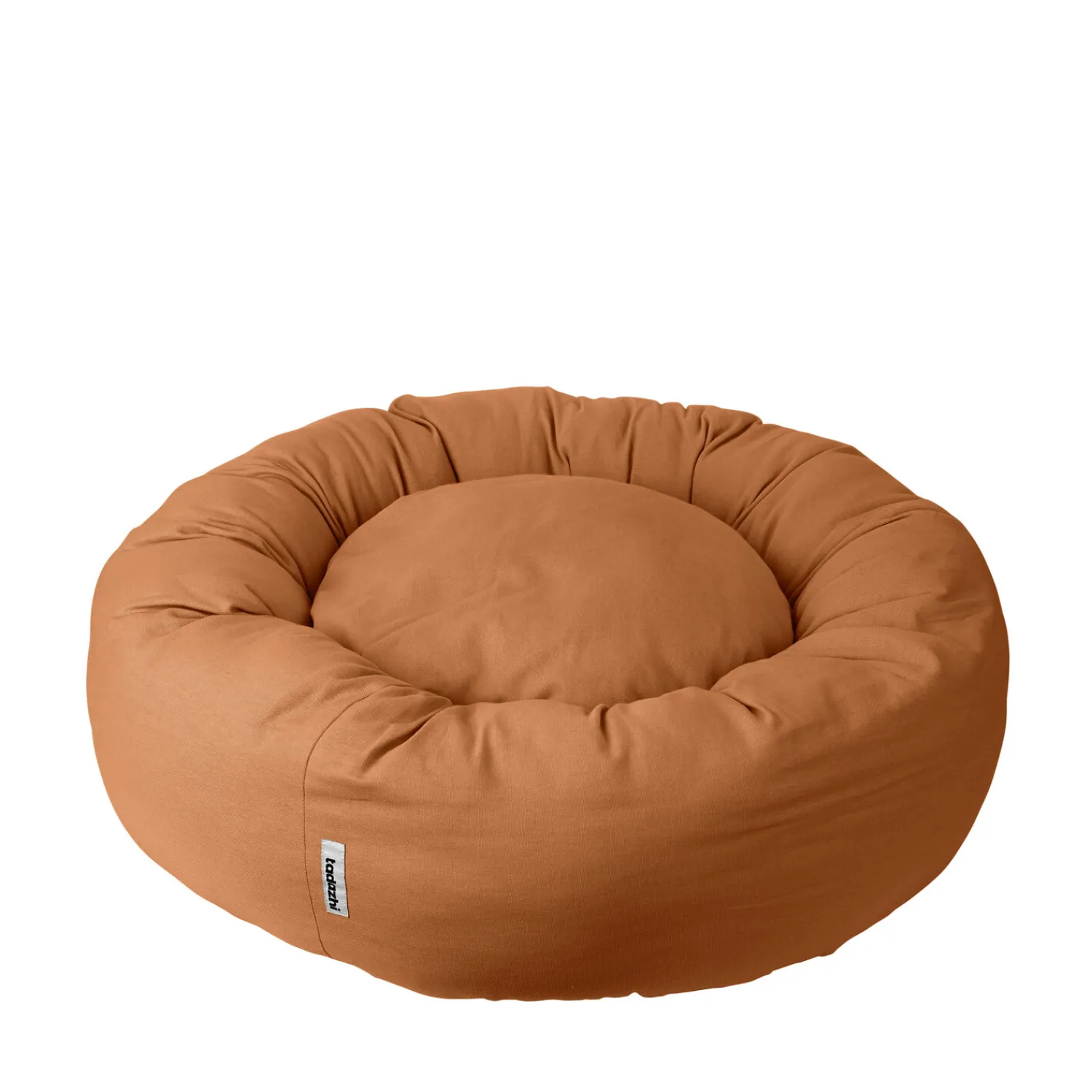 Betrukket med tadazhi’s økologiske bomuldsstof. Æstetisk og blød med en fasthed, der bevarer formen. Velegnet til dagligdags brug. Donut-sengen er generøst fyldt med genanvendt ikke-allergifremkaldende fyld. Den indvendige pude er udtagelig, og betrækket på den indre pude er aftageligt. Donut-sengen kan maskinvaskes.