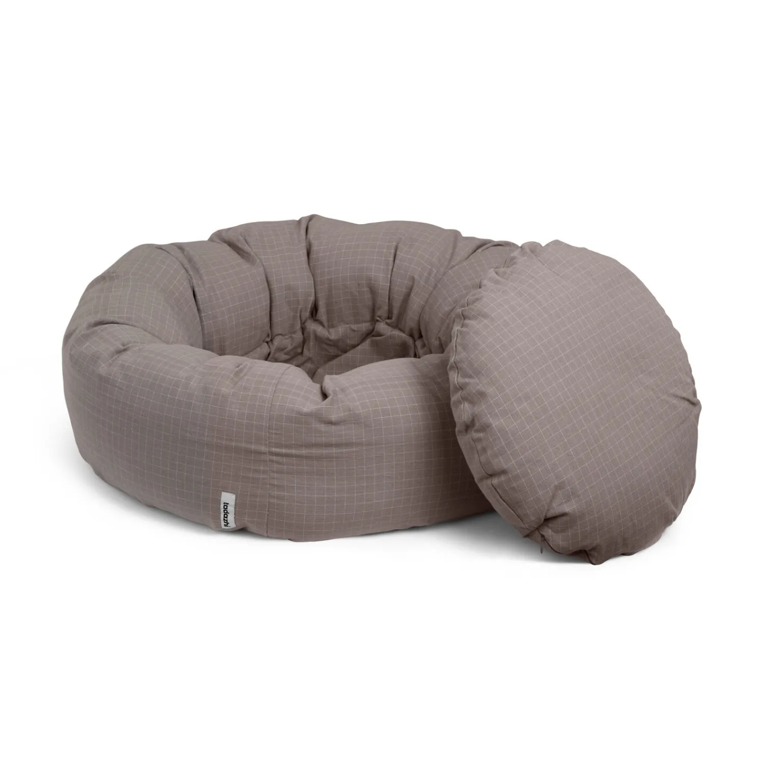 Betrukket med tadazhi’s økologiske bomuldsstof. Æstetisk og blød med en fasthed, der bevarer formen. Velegnet til dagligdags brug. Donut-sengen er generøst fyldt med genanvendt ikke-allergifremkaldende fyld. Den indvendige pude er udtagelig, og betrækket på den indre pude er aftageligt. Donut-sengen kan maskinvaskes.