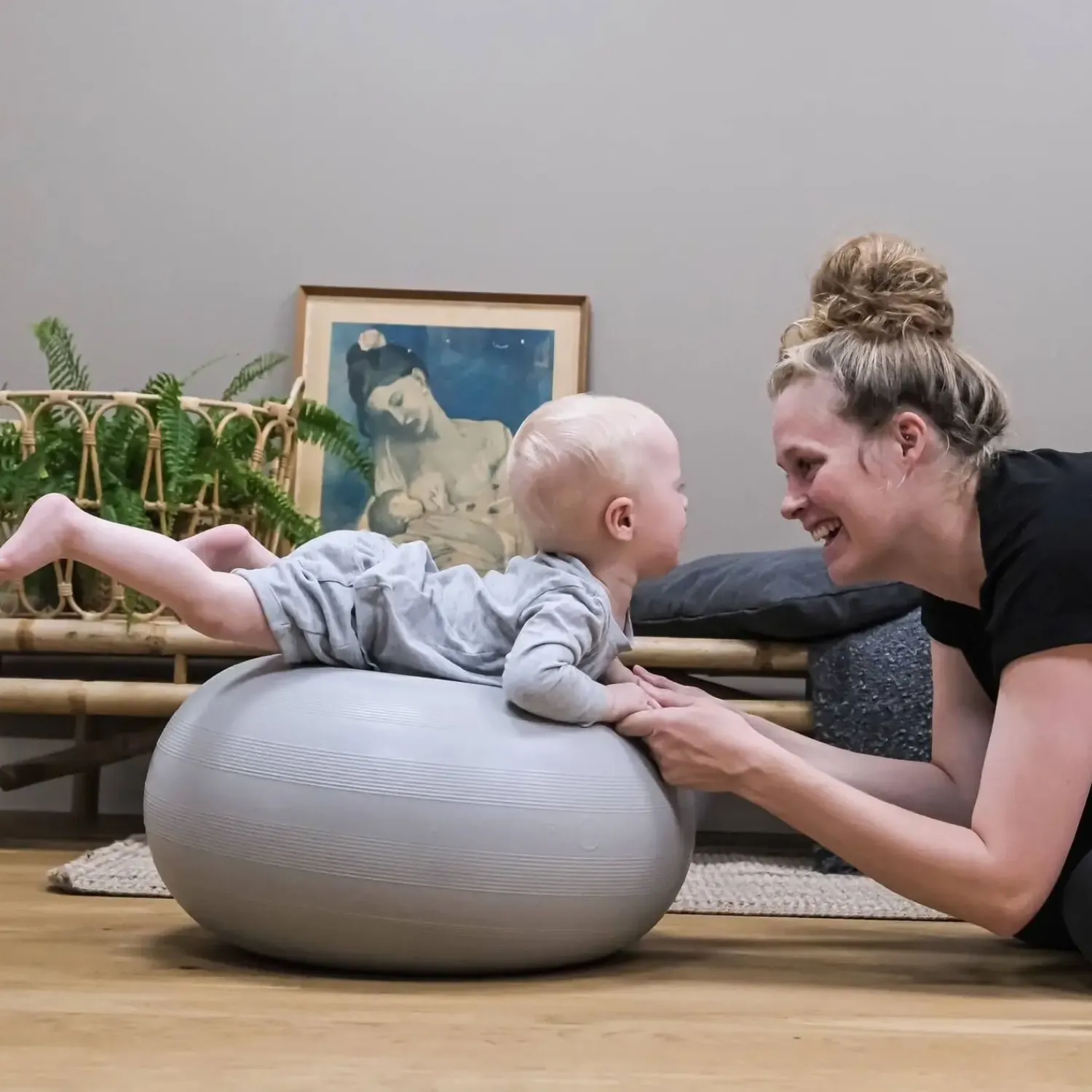 Man kan ikke lade være med at smile, når man hopper. Det er en af livets smukke sandheder. Og alene af den grund bør alle børn og barnlige sjæle eje en Donut.bObles Donut findes i tre størrelser, så der er en til alle medlemmer i familien. Men bare fordi man er stor, skal man ikke nødvendigvis have den store Donut. Mor og far vil med garanti nyde den bevægelse og koncentration, der følger med at lægge den lille Donut på en skammel eller stol. Ligesom baby vil klukke af lykke, når der bliver trænet nakke og ryg på en mellem Donut.Sæt Donut på højkant og pludselig har alle familiemedlemmer det sjoveste hoppedyr. Baby vil elske at sidde på skødet af forældrene, mens de hopper rundt på den store Donut. Ligesom det vil være en sanserejse, der både stimulerer vestibulærsansen, muskelledsansen og følesansen, når baby bliver gynget frem og tilbage og fra side til side på Donut, mens der en gang imellem bliver slået i siden på den, så baby kan mærke vibrationerne i den elastiske gummi.Trykkes den elastiske Donut ned i gulvet, dannes et vakuum, så den står fast, og har man to eller flere, kan de sættes ovenpå hinanden.