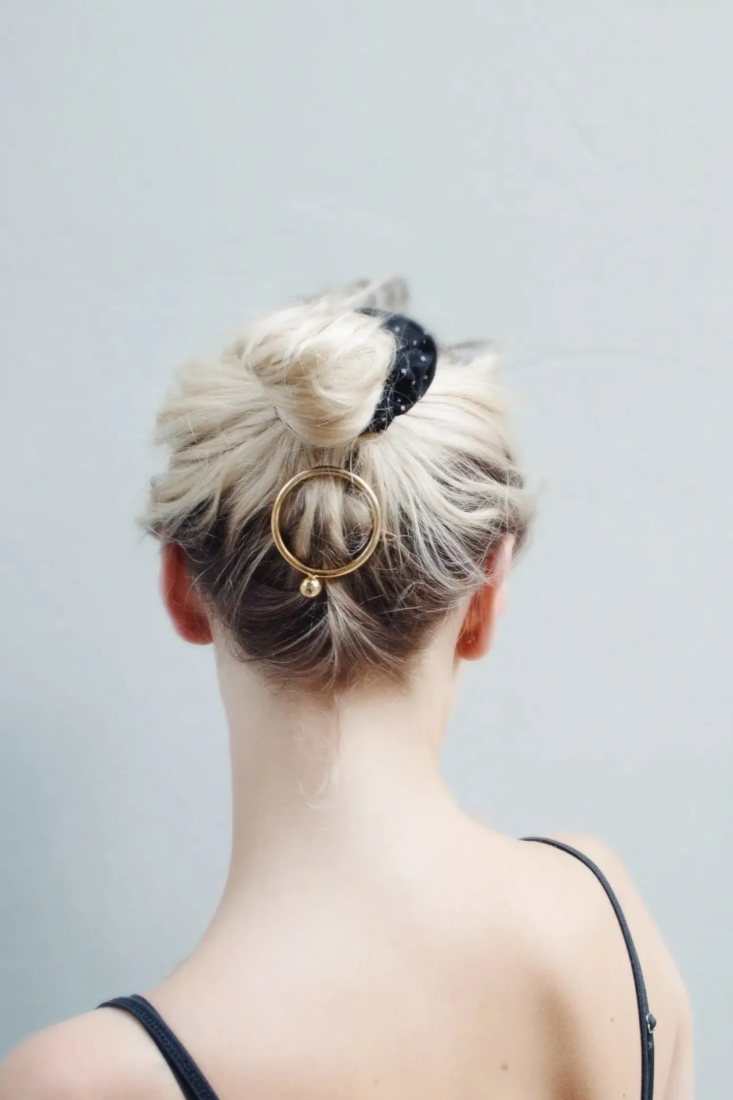 Smuk hårspænde fra JUKSEREI. Få det lange hår væk fra ansigtet med guld Dot hårspændet. Hårspændet er håndlavet i Italien og designet i Berlin.