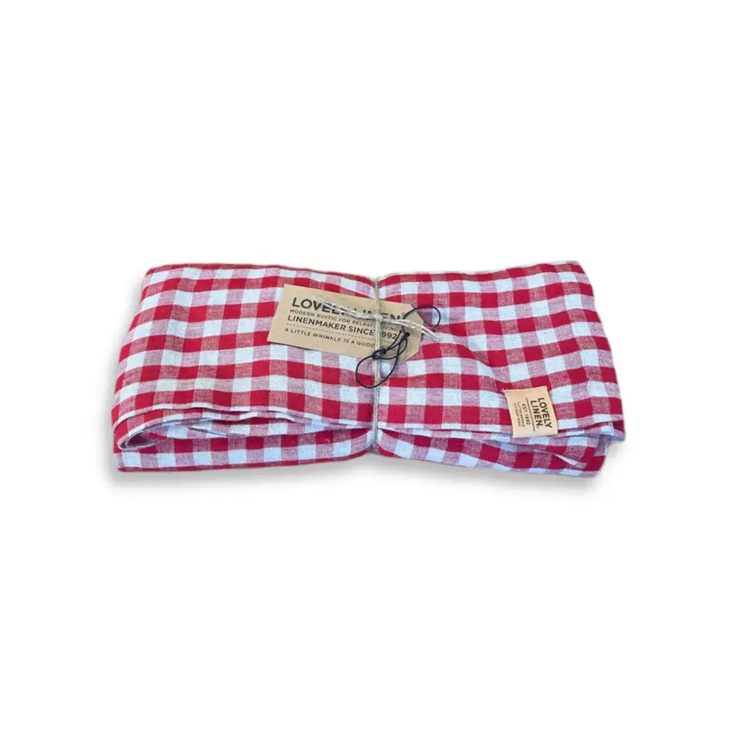 Den ternede hørdug fra Lovely Linen i farverne rød og hvid er en smuk og tidløs dug til dit spisearrangement. Hør er kendt for sin naturlige skønhed og holdbarhed.