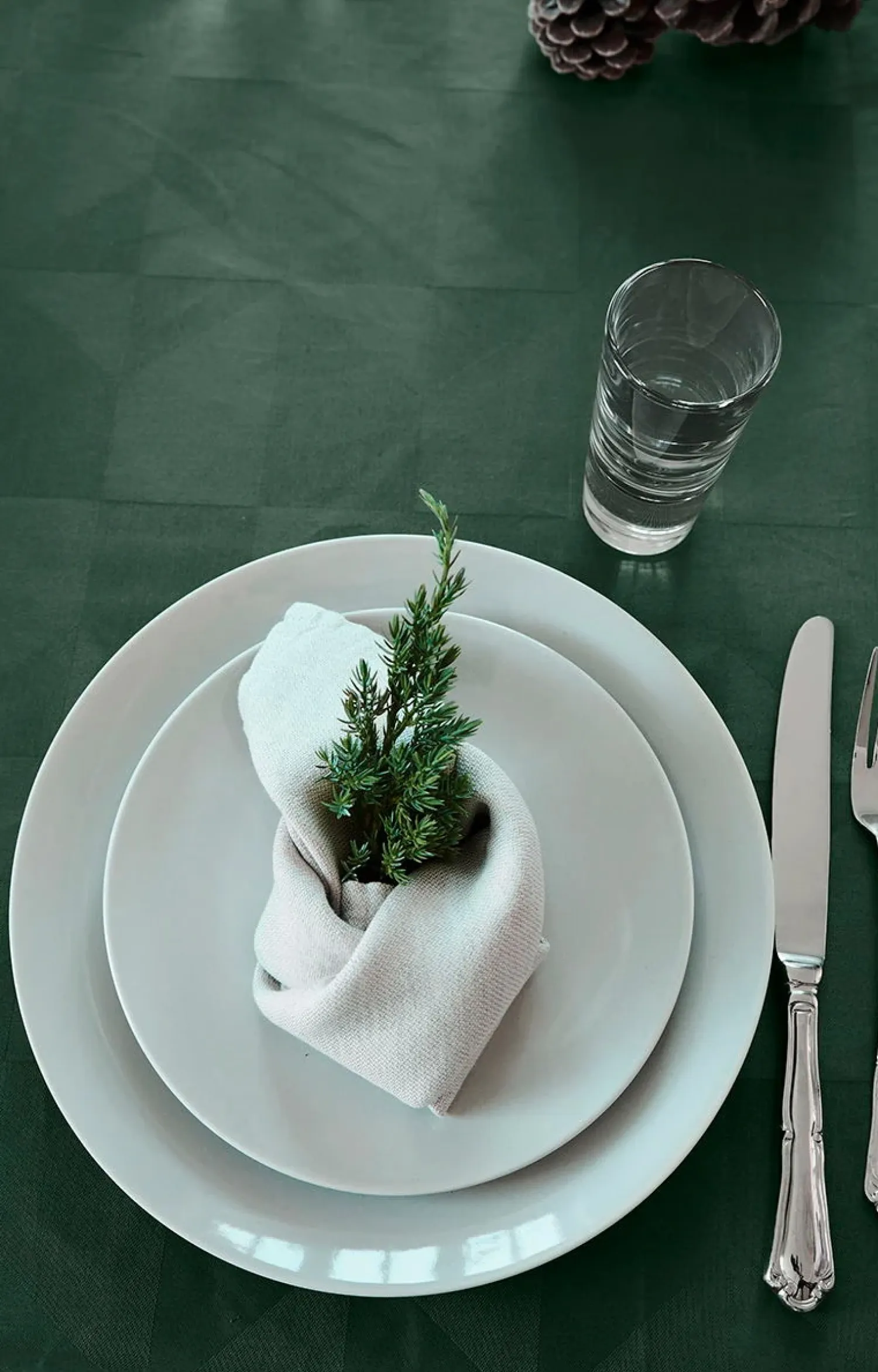 Eksklusiv grøn damask dug i 100% bomuld. Den smukke damask vævning giver et flot tone i tone spil. Den særlige smuds- og vandafvisende overflade gør dugen til det perfekte valg til både hverdag og fest.