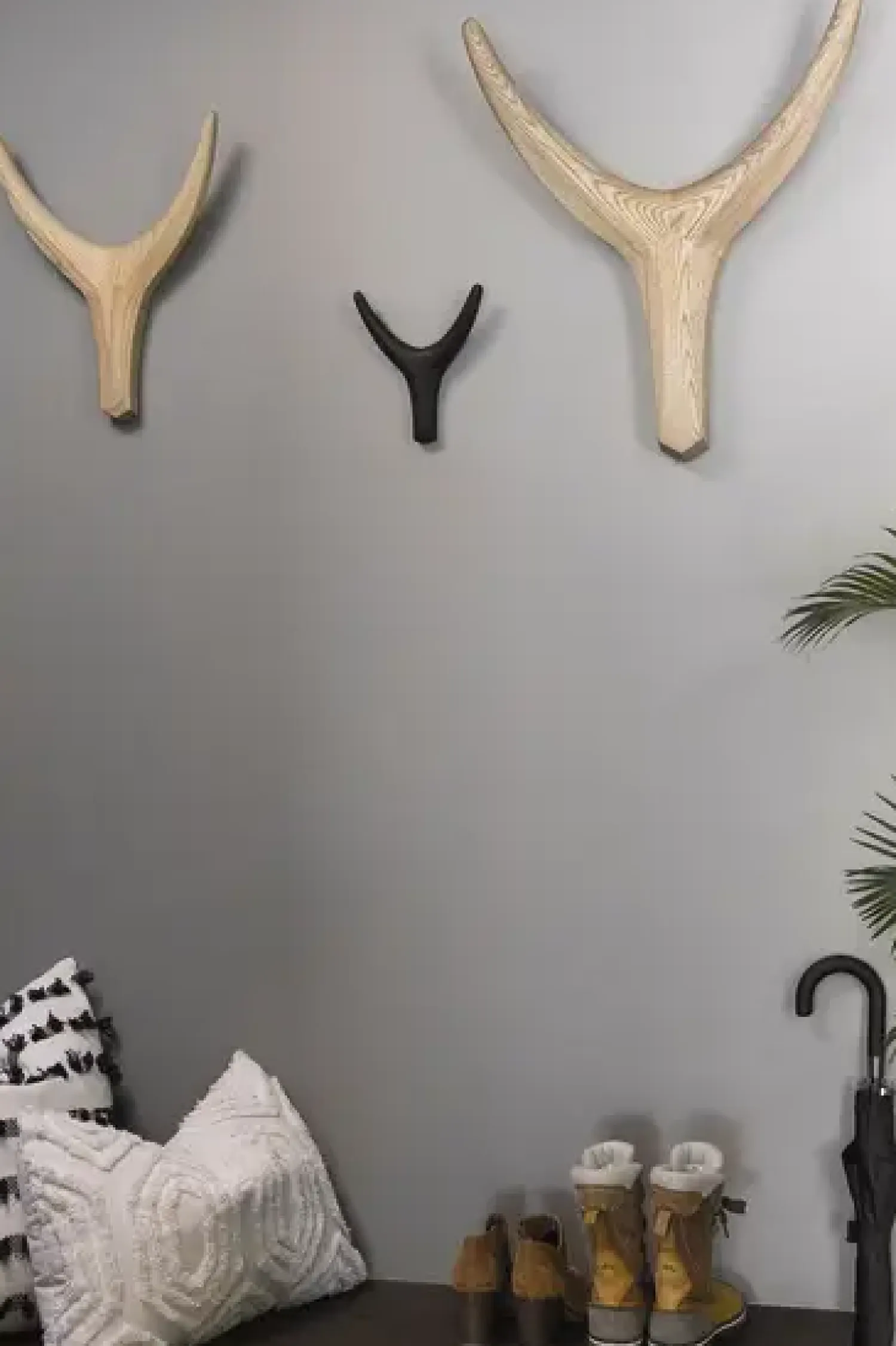 Med en længde på 23 cm og en højde på 21 cm passer knagen ind i de fleste entréer, soveværelser eller badeværelser. De klare dimensioner gør det nemt at planlægge placeringen, og det V-formede design sikrer, at dine ting hænger sikkert uden at glide af.