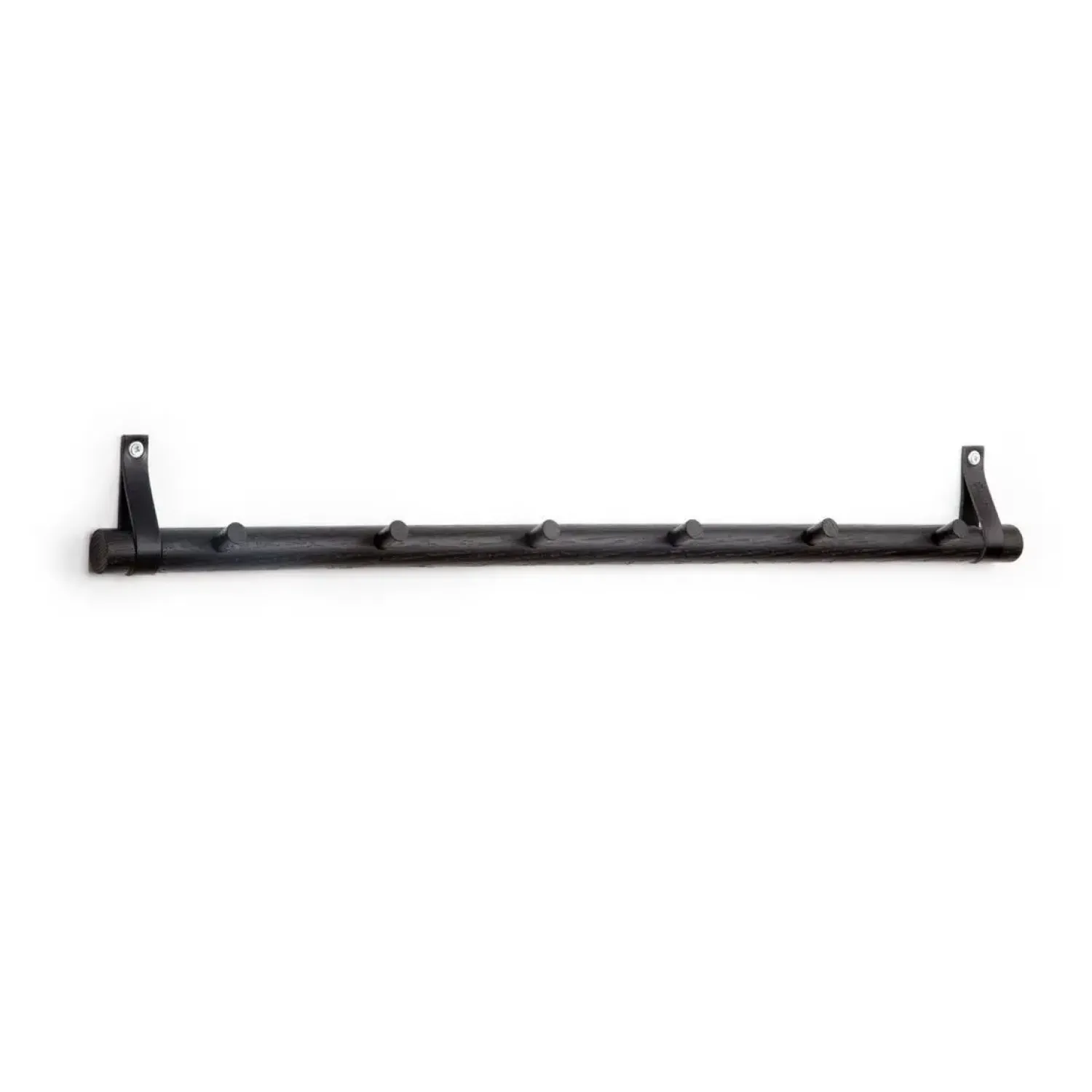 Denne knagerække kombinerer funktionalitet med et moderne udseende. Lavet af eg med sort finish giver den både holdbarhed og en stilren æstetik, der passer ind i mange hjem. Med en længde på 80,5 cm får du en praktisk løsning til entréen eller gangen.