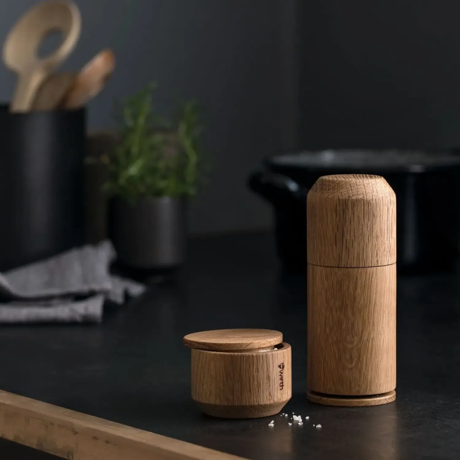 Denne kværn fra Ekta Living kombinerer funktionalitet med naturlig æstetik. Den keramiske kværn fra CrushGrind sikrer jævn og effektiv malning, uanset om du bruger den til peber eller salt. Grovheden kan justeres efter dine behov, så du kan tilpasse malningen til forskellige retter.