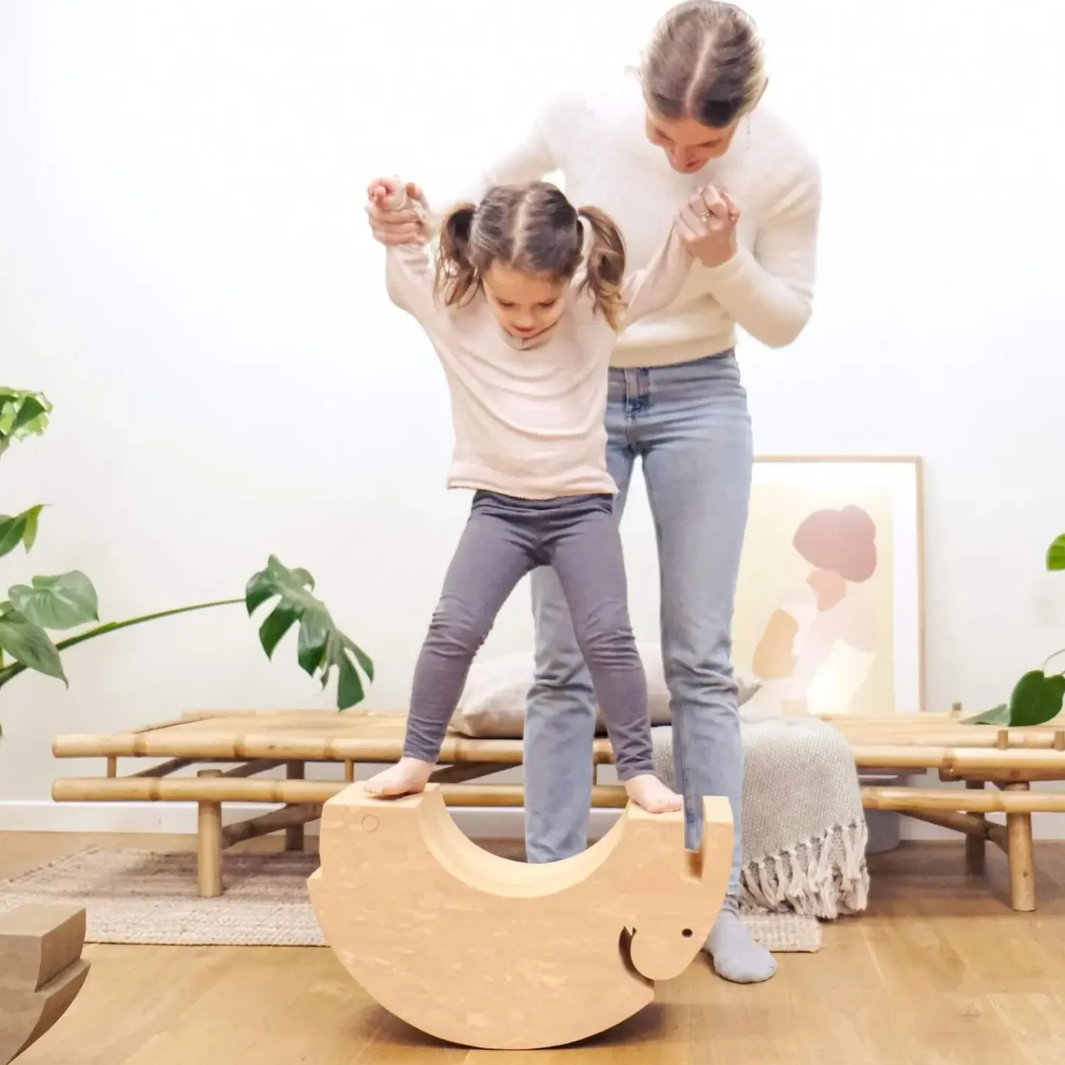 Med dimensioner på 31 cm i højden, 55 cm i længden og 21 cm i bredden passer elefanten ind i de fleste rum uden at fylde for meget. Størrelsen giver børn mulighed for at klatre, balancere og sidde, mens den stadig er håndterbar at flytte rundt med efter behov.