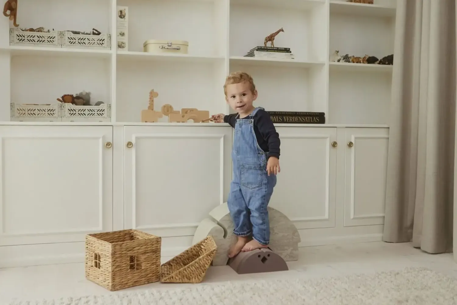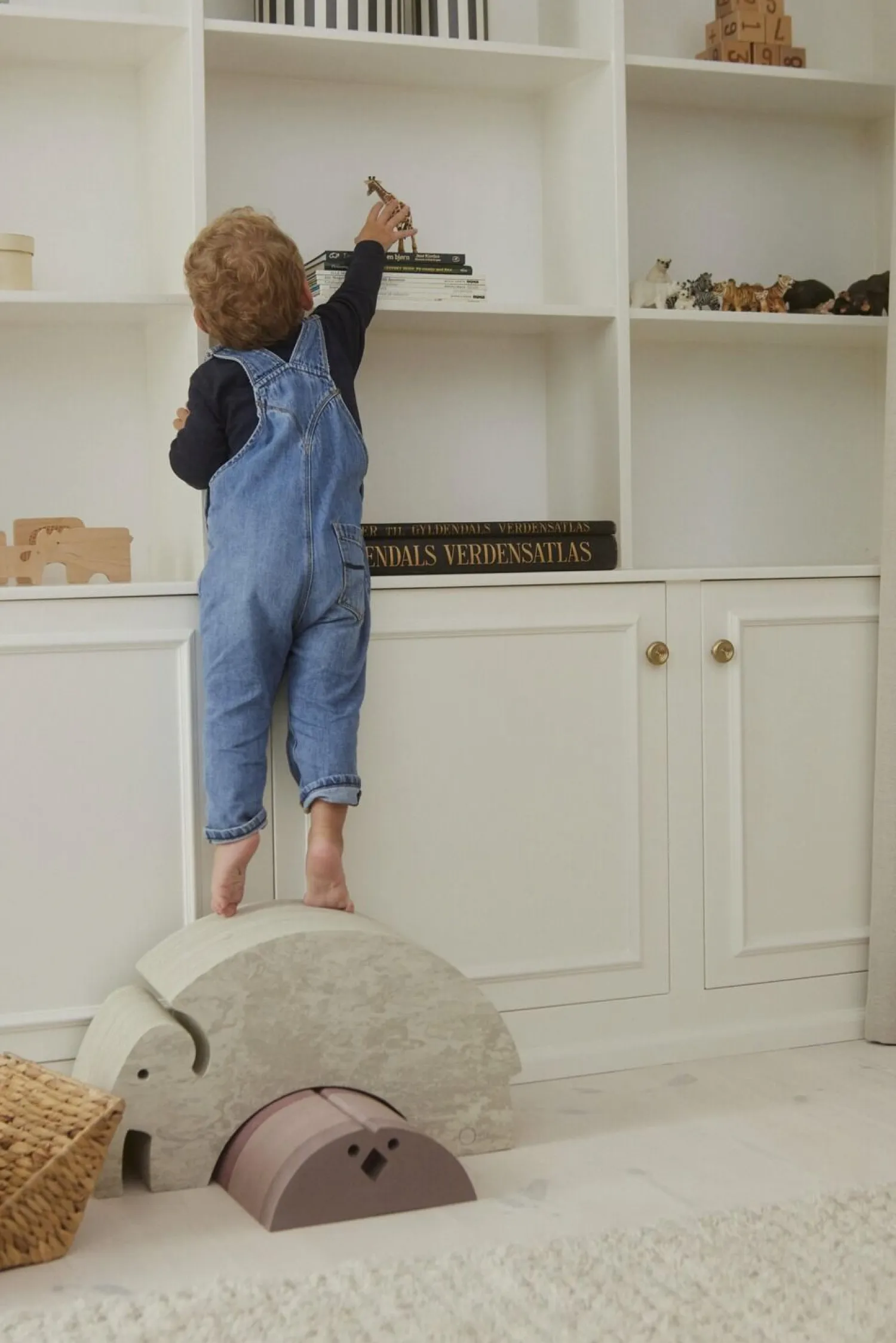 bObles Elefant er et elsket tumlemøbel, der kombinerer leg, motorisk udvikling og praktisk funktionalitet i én form. Den hjælper børn op i højderne, giver sommerfugle i maven og fungerer samtidig som stol, bord og skammel i hverdagen. Den er ideel til rutiner som håndvask, tandbørstning og sengetid – og samtidig et motorisk redskab, der udvikler barnets balance og koordination gennem leg. Fra baby til stort barn er Elefanten et alsidigt tumlemøbel. Den mindste kan træne nakke og ryg ved at ligge hen over den buede ryg, og når Kylling lægges i maven på Elefanten, bliver den til en sjov og stimulerende vippe for baby, der styrker vestibulærsansen og skaber nærvær mellem barn og forælder. Tumlingen kan begynde at vippe siddende, og som modet vokser, også stående. Når barnet skal lære at gå, er Elefanten et trygt og stabilt sted at rejse sig op – EVA-skummet er skridsikkert og blødt mod både fødder og gulv.bObles Elefant er let at transportere fra rum til rum, og designet er gennemtænkt, så det passer ind både på børneværelset og i stuen. Den kan indgå i tumlebaner, bruges som siddemøbel ved spisebordet eller som skammel til de mindste, der gerne vil hjælpe til i køkkenet. Uanset hvordan den bruges, inviterer den til leg, bevægelse og motorisk udvikling – og holder til det hele.Mål: H 31 x L 55 x B 21 cm