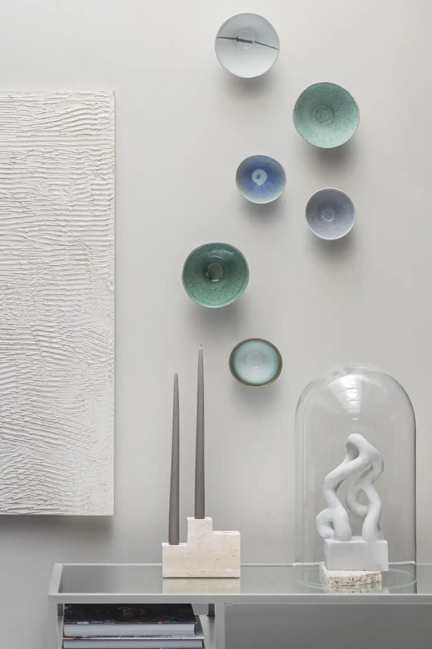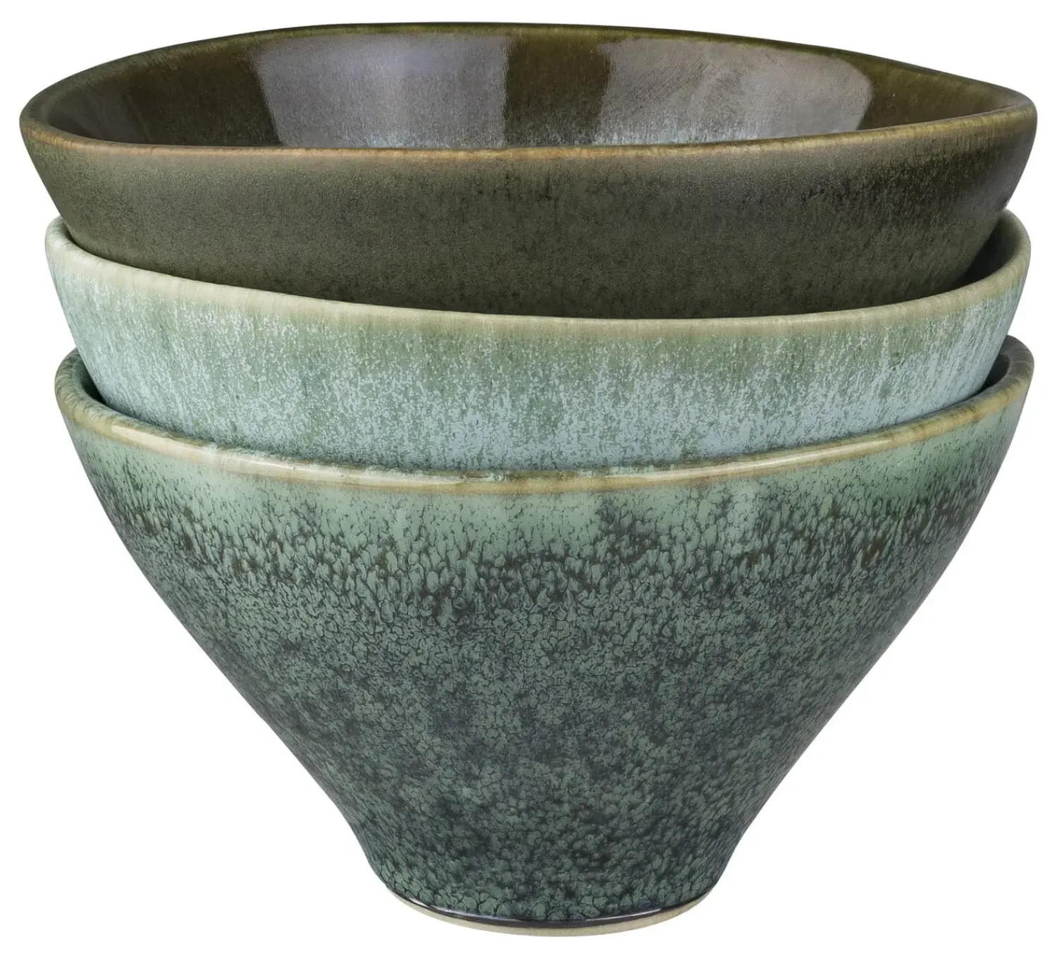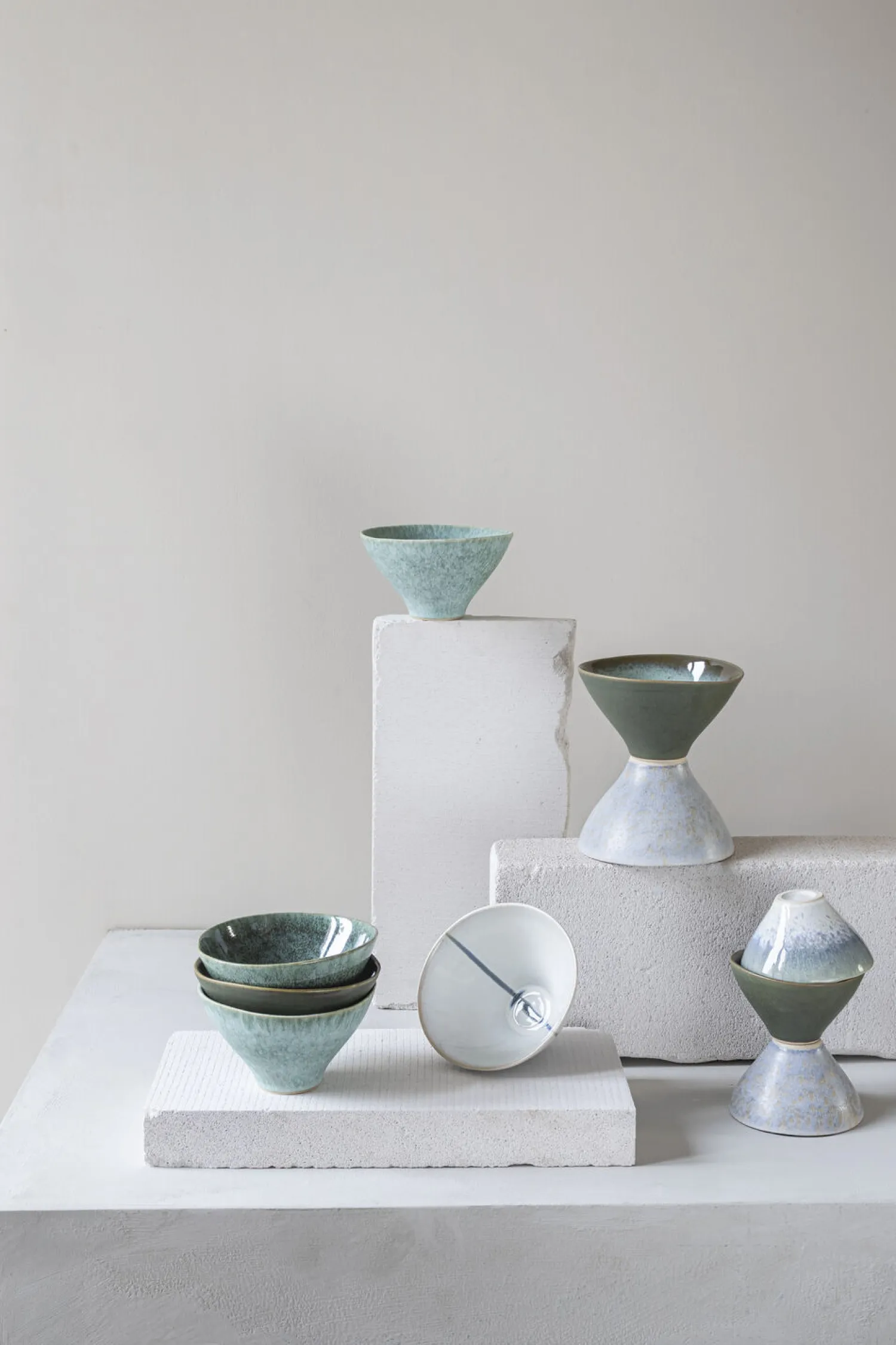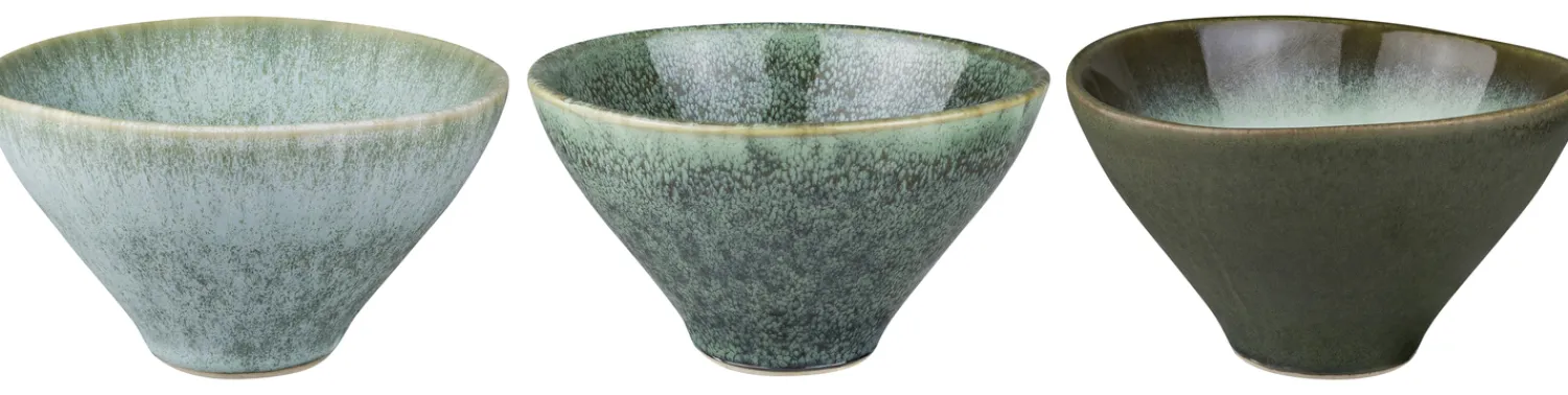De små ELEMENTS-skåle i grønne toner fra Mette Ditmer kombinerer funktion og æstetik i et unikt design. Skålene er fremstillet i stentøj og er hver især dekoreret med forskellige grønne glasurer med både blank og mat finish. Den legende brug af glasurer og de varierende grønne nuancer giver hver skål sit eget udtryk, hvorfor ingen er helt ens.Den organiske form og den karakteristiske fod, leder tankerne hen på japansk keramikkunst, og gør skålene både smukke og særlige. Brug dem til tapas, snacks eller små anretninger, eller lad dem stå fremme som dekorative elementer i din indretning. Skålene kommer i en pakke af tre, er fødevaresikre og tåler opvaskemaskine. TIP: ELEMENTS-skålene er også ideelle som små lysestager – brug dem med fyrfadslys for at skabe en hyggelig stemning i vindueskarmen eller på spisebordet.