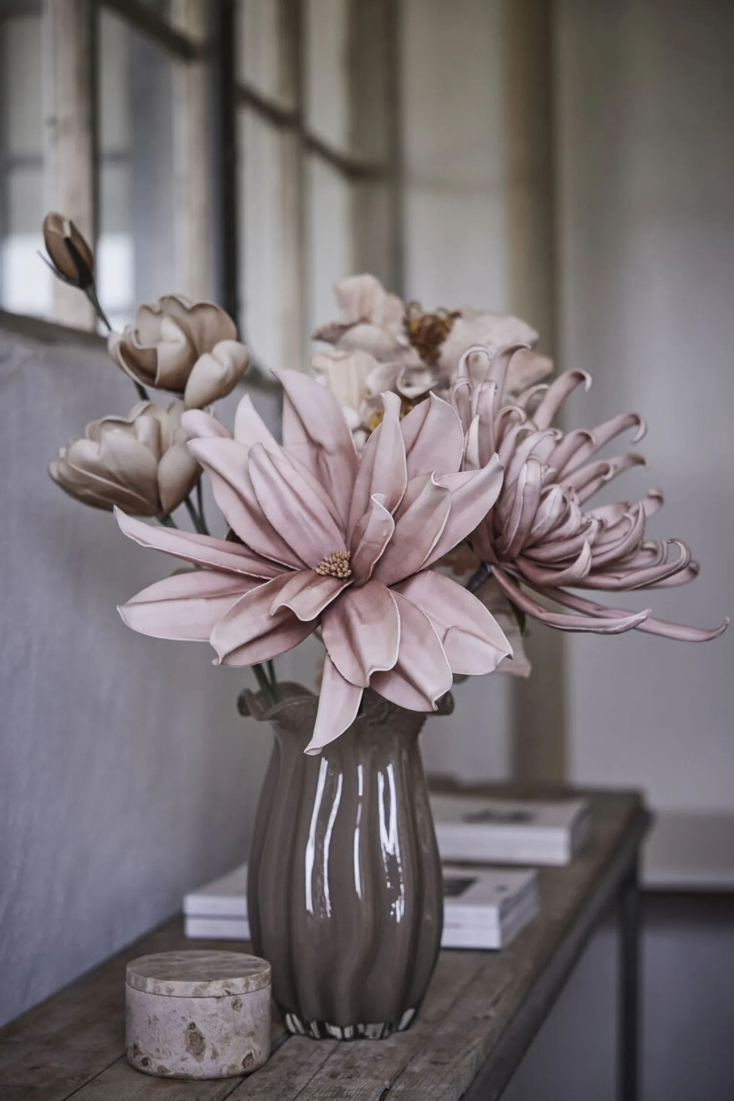 Ellia marmor krukke er lavet af massiv marmor og savet ud af en stor blok marmor, derefter skåret i den perfekte form og poleret på alle overflader. Vores Ellia serie er håndlavet, og det kræver både erfaring og koncentration at få den perfekte form. Marmor er et naturmateriale, så variationer kan forekomme, hvilket gør hver skål unik.