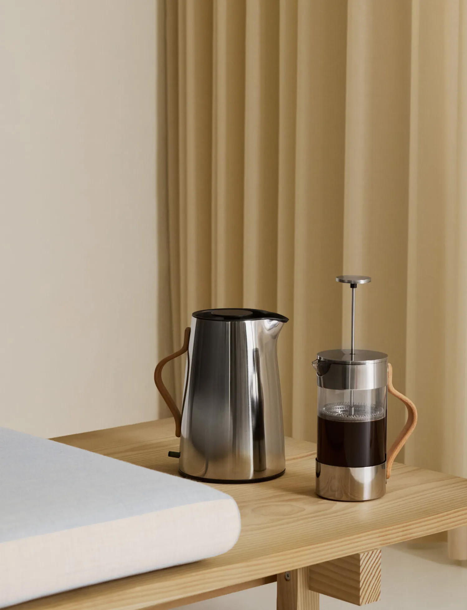 Forskøn hverdagen med Emma – Steltons prisvindende te- og kaffeserie. Emma elkedlen er en æstetisk, flot stålkande med rene linjer, der i en smuk sandfarve matcher både lyse og mørke køkkener. Det formspændte bøgehåndtag giver elkedlen et distinkt nordisk udtryk. Den ledningsfri elkedel kan rumme 1,2 L. og er forsynet med udtageligt kalkfilter, tørkogningssikring og automatisk slukning ved kogepunktet.