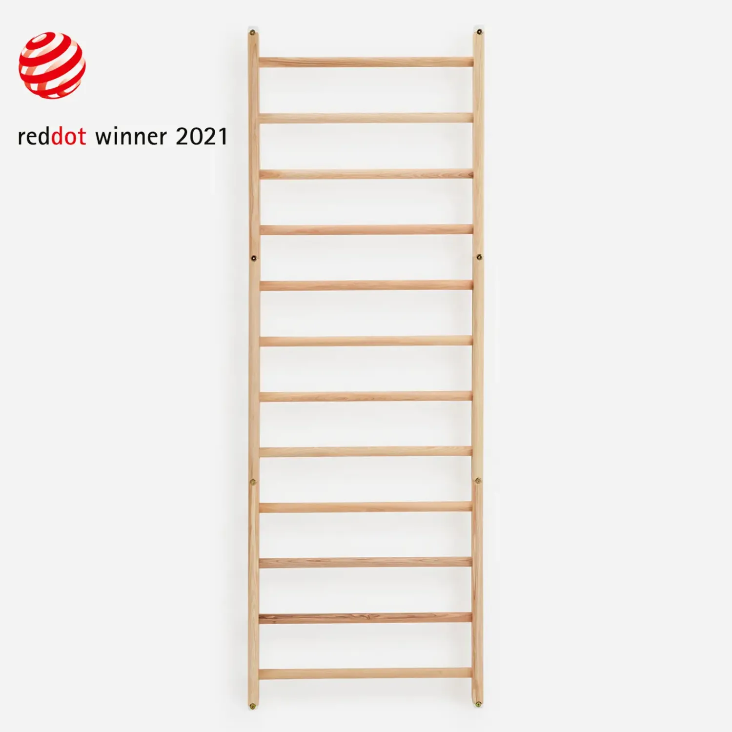 Ribbevæggen kan monteres på alle vægtyper, hvilket giver dig frihed til at vælge den bedste placering i hjemmet. Asketræets naturlige styrke, kombineret med den gennemtænkte konstruktion, giver maksimal stabilitet under brug.