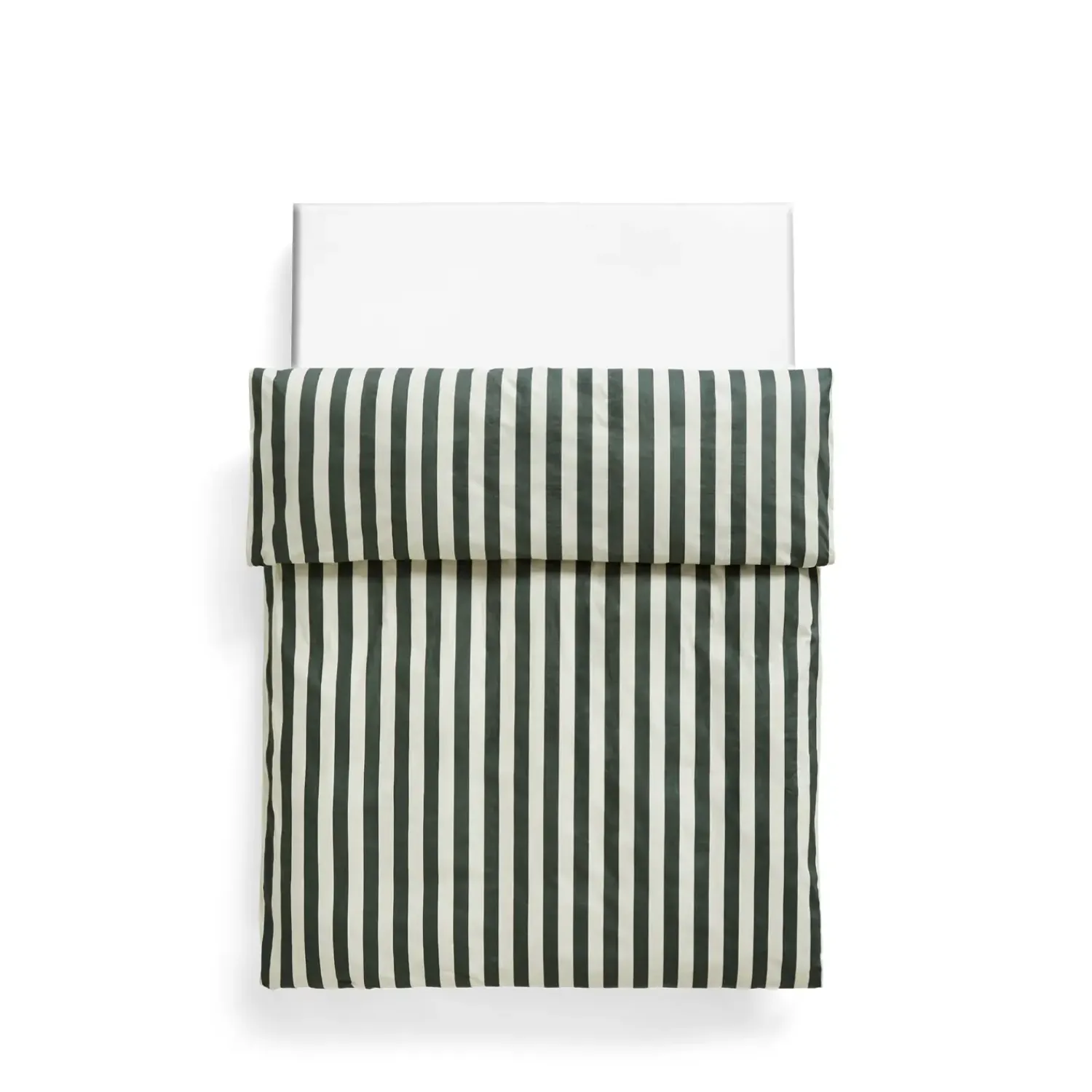 Dette dynebetræk fra HAY’s Été-kollektion kombinerer 100 % bomuld med et karakteristisk stribet mønster i mørkegrønne og lyse nuancer. Bomulden sikrer en behagelig og åndbar soveoplevelse gennem alle årstider.