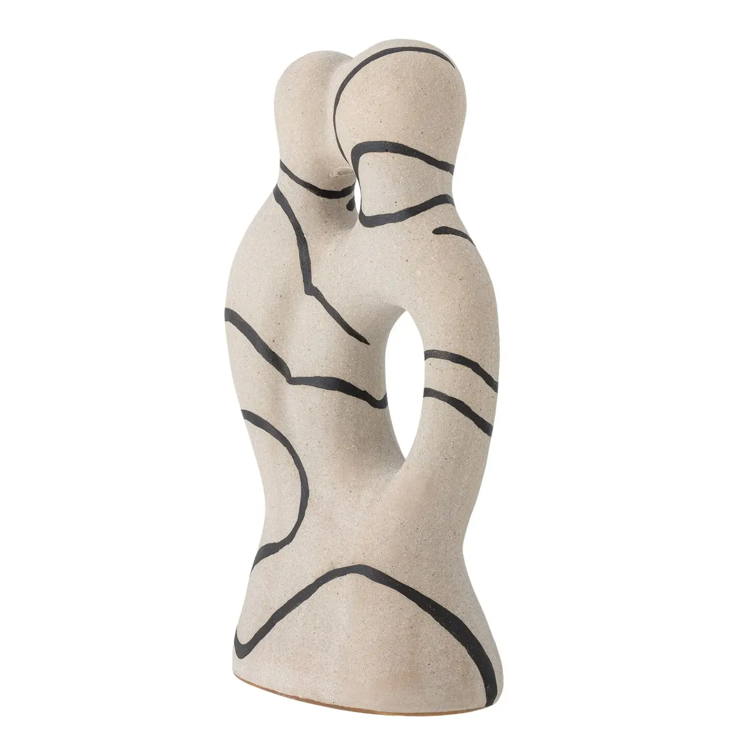 Den reaktive glasur og håndmalede dekoration giver hver skulptur sit eget særpræg. Du vil kunne se små variationer i både farve og mønster, som gør netop din Eugenie Deko særlig. De sorte linjer danner bløde, organiske mønstre.