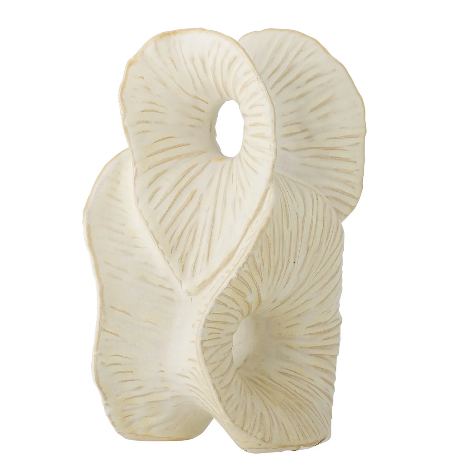 Håndlavet stentøjsdekoration med organisk form og rillet overfladetekstur. Den naturlige farve og de harmoniske dimensioner på 17,5 x 26 x 13 cm gør dette stykke til et interessant indslag i din indretning.