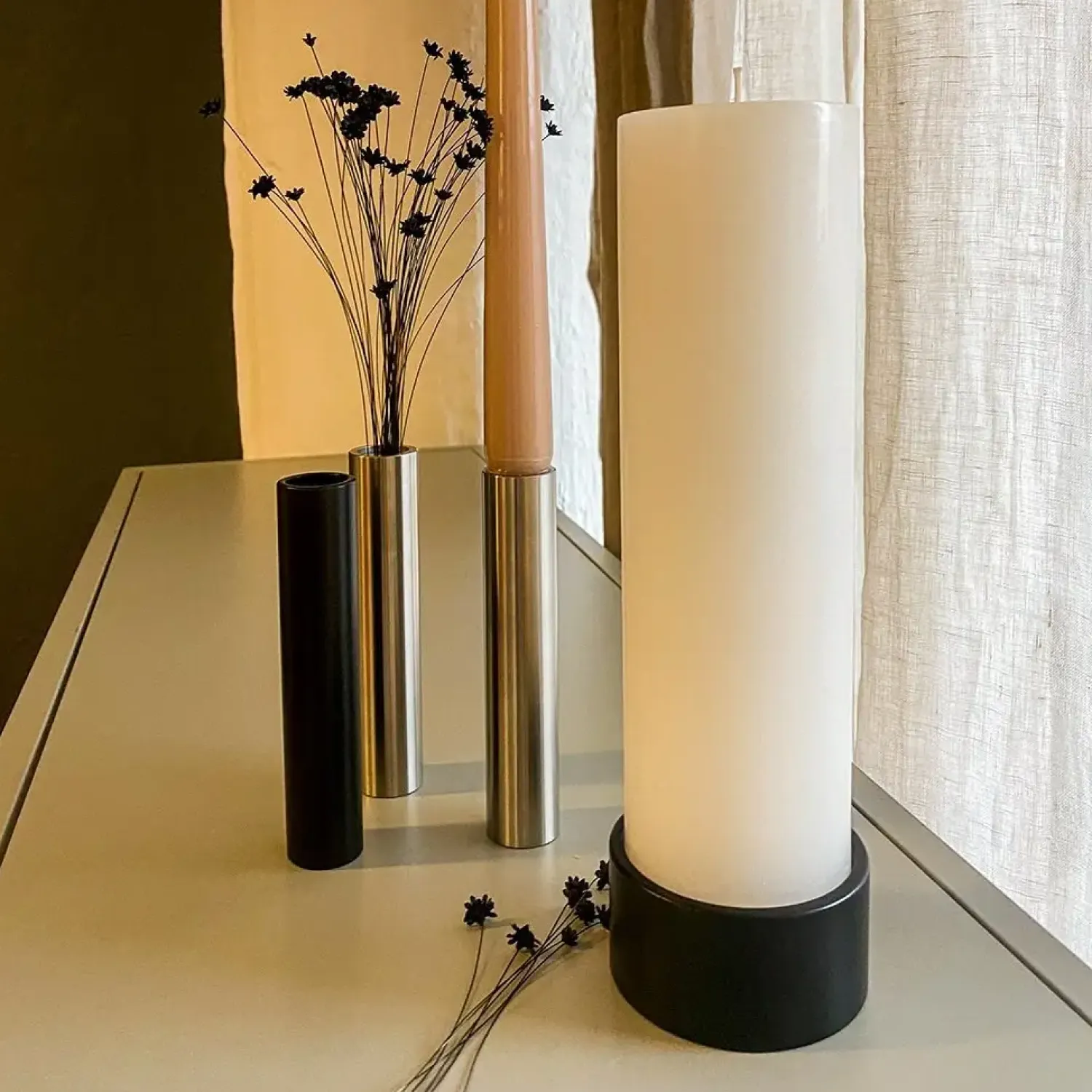 Smuk og elegant sort lysestage fra Hove Home til søjlelys. Lysestagen Fat Light kan vendes og dermed bruges til lys med en diameter på både 5 og 7 cm. Det minimalistiske design passer ind i ethvert hjem. Også perfekt til kalenderlys i julemåneden.