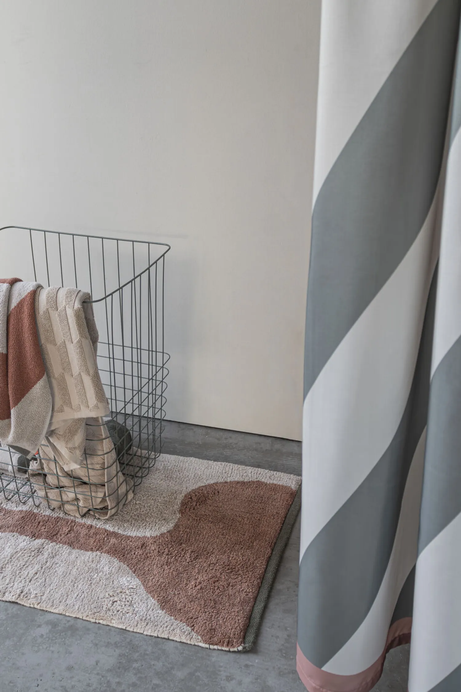 Skab et personligt og farverigt udtryk i dit hjem med FIGURA. Den lille FIGURA-måtte i farven brick, er en dekorativ og praktisk måtte, der med sit grafiske design og smukke rødbrune nuancer tilfører varme og karakter til ethvert rum. Den bløde, tuftede overflade trækker tråde til 70’ernes ryamåtter og gør måtten utrolig behagelig at træde på – perfekt i soveværelset, i stuen eller som et farverigt indslag i børneværelset.Måttens skridsikre bagside af latex gør den også velegnet til badeværelset, hvor den kombinerer funktion og stil. FIGURA-måtten har en signaturblok med en kontrasterende farve, som bryder det organiske mønster og tilføjer et legende element. TIP: Brug måtten som vægdekoration eller sæt flere måtter sammen for et personligt udtryk.