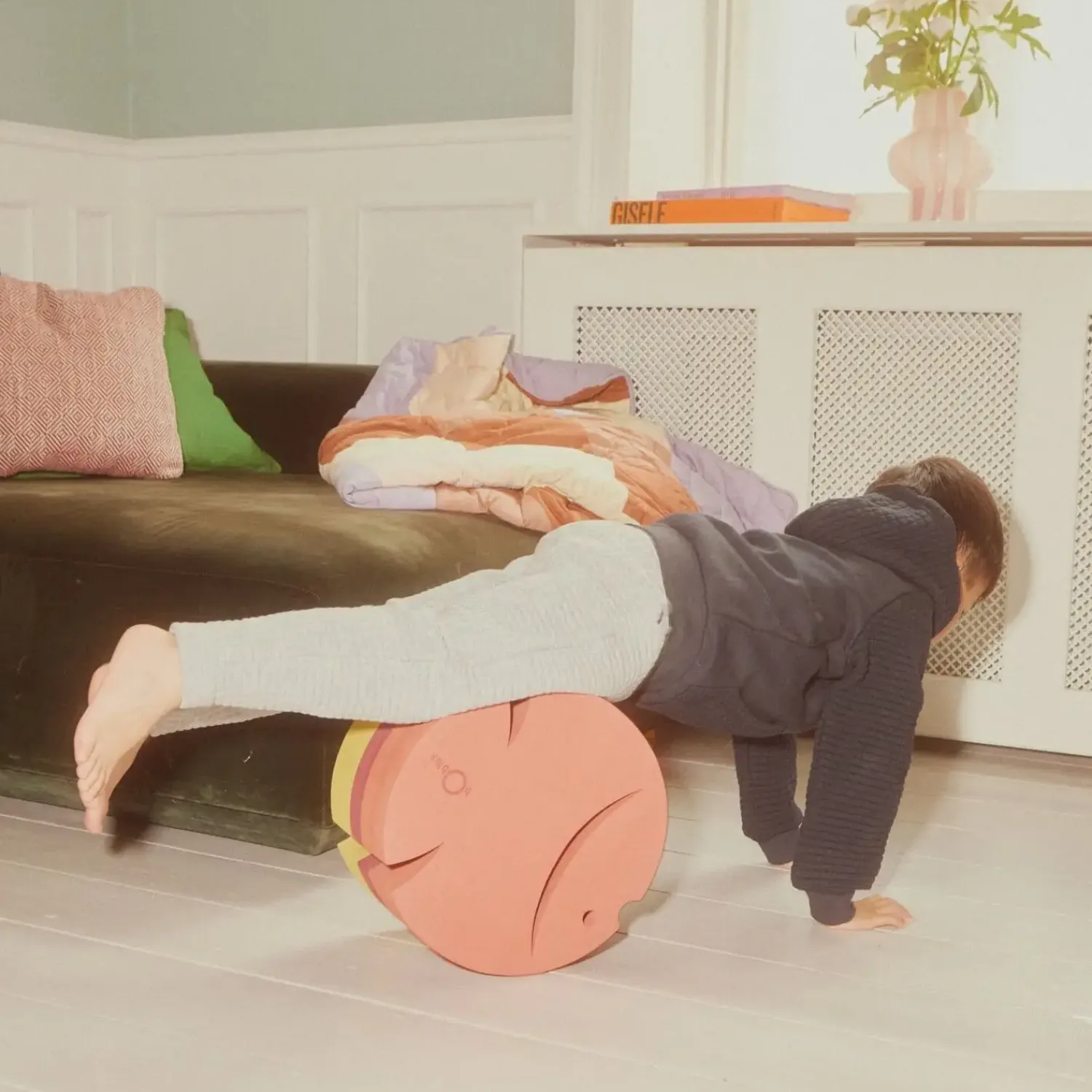 bObles Fisk L er et alsidigt og inspirerende tumlemøbel, der inviterer til leg, vip og balance for både små og lidt større børn.Med sin stabile størrelse og karakteristiske form er Fisk L perfekt som skammel, vippe og balanceelement, og den kan bruges overalt i hjemmet – ved håndvasken, i køkkenet, som del af en tumlebane eller blot som et roligt sted at sidde.Når barnet sidder overskrævs på Fiskens runding, trænes både balance og faldrefleks, og det bløde skridsikre EVA skum sikrer, at den står stabilt uden at ridse gulvet. Fiskens størrelse gør det let for barnet at bruge den som støtte, når der skal rejses op, og den kan vippe i alle retninger, hvilket styrker kropsbevidsthed og motorik.bObles Fisk L kan bruges alene eller kombineres med de mindre Fisk i serien for at skabe sjove og udfordrende tumlescenerier. Brug dem som trin ved toilettræning, som trædesten i en motorisk bane eller som stille legeplads midt i stuen. Med sit ikoniske og stilrene design passer Fisk ind i alle hjemmets rum.Lavet i slidstærkt EVA skum med en blød overflade, som holder til mange års leg og bevægelse.