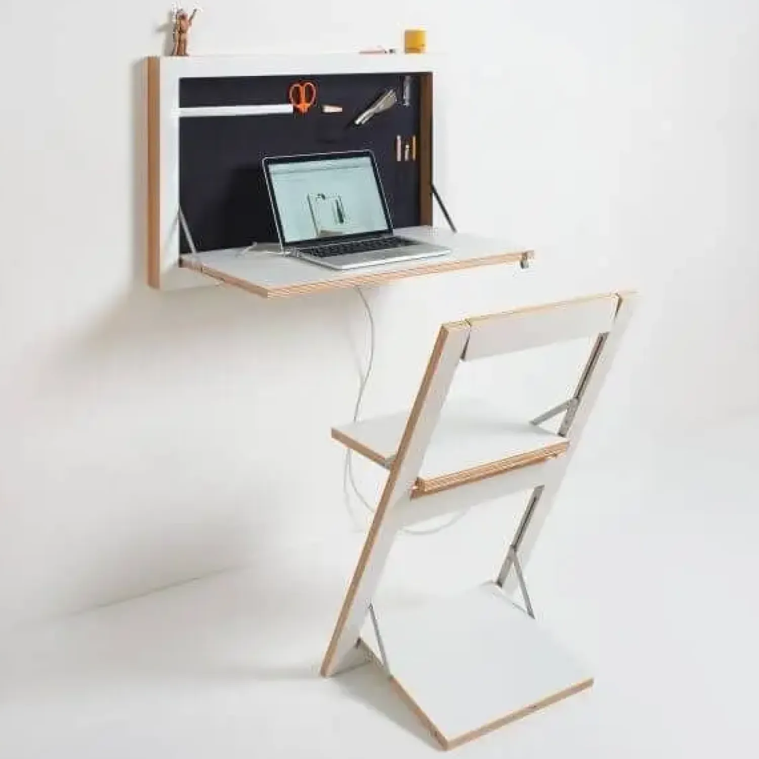 Super skøn arbejdsstation fra Ambivalenz. Kan bruges som vægopbevaring, skrivebord eller kreativ arbejdsstation. Med en total tykkelse på kun 6 cm giver den minimalistiske vægpose mulighed for at opbevare bærbare computere, strømadaptere, magasiner og selvfølgelig til saks, penne og papir.