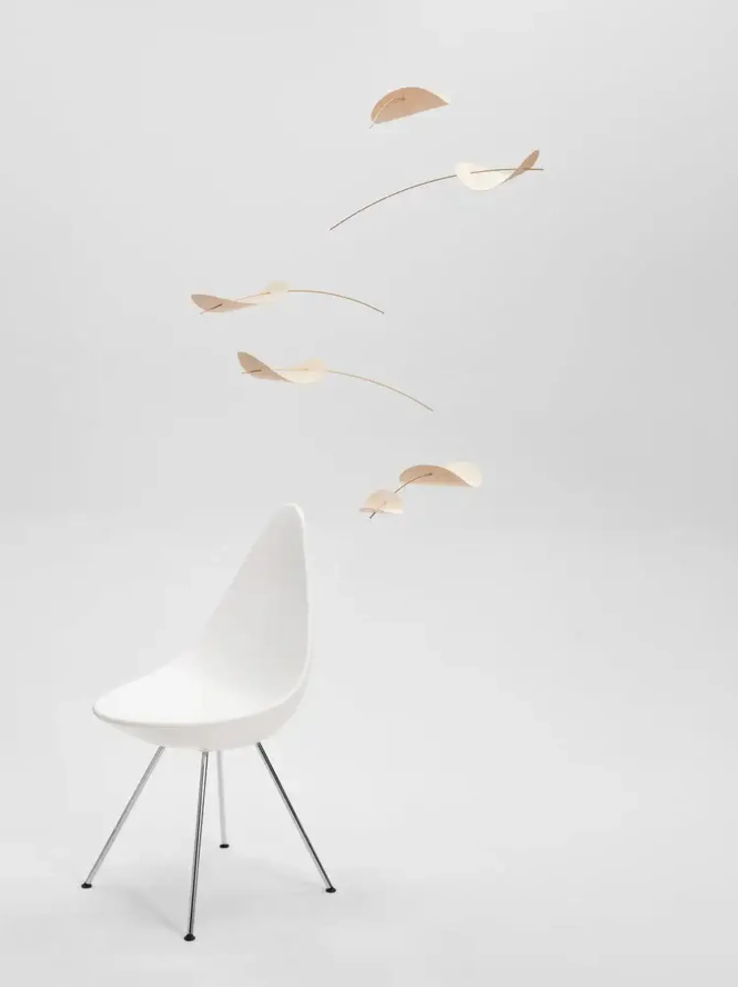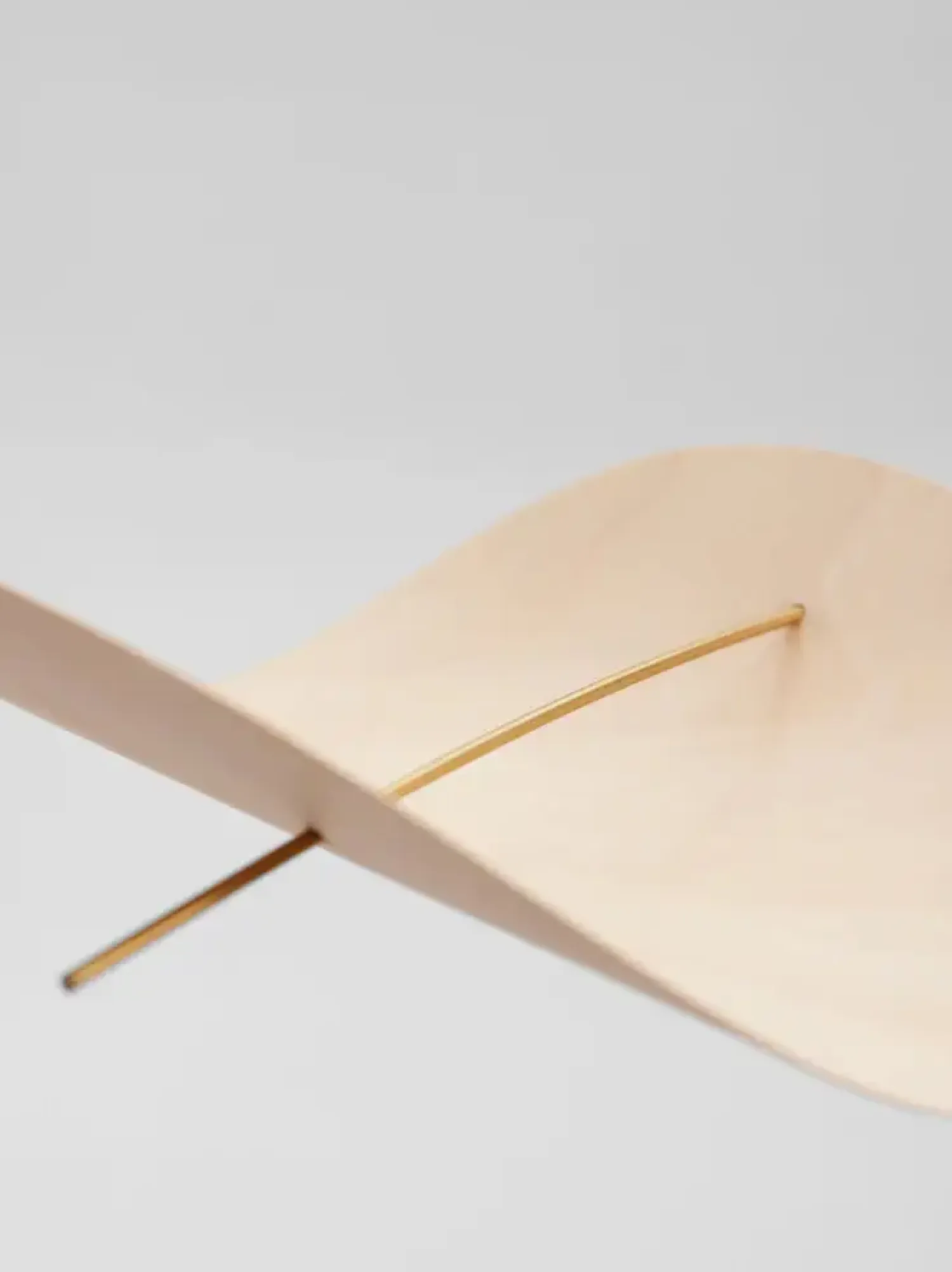Smuk Drifting Clouds mobile fra Flendsted hanging art. Uroens blade er lavet af træ, der er sat på gyldne bøjler. Ideel til det moderne, nordiske hjem.
