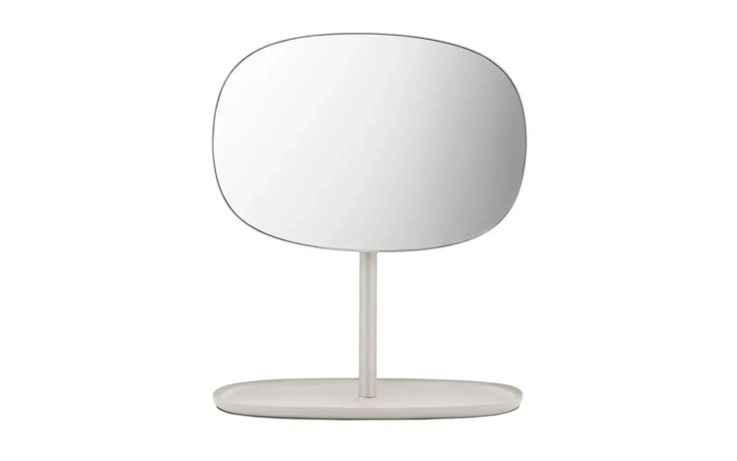 Den organiske form uden geometriske linjer giver spejlet et blødt udtryk, der nemt integreres i din indretning. Basens design holder spejlet sikkert på plads, så du kan bruge det uden bekymringer i dagligdagen.