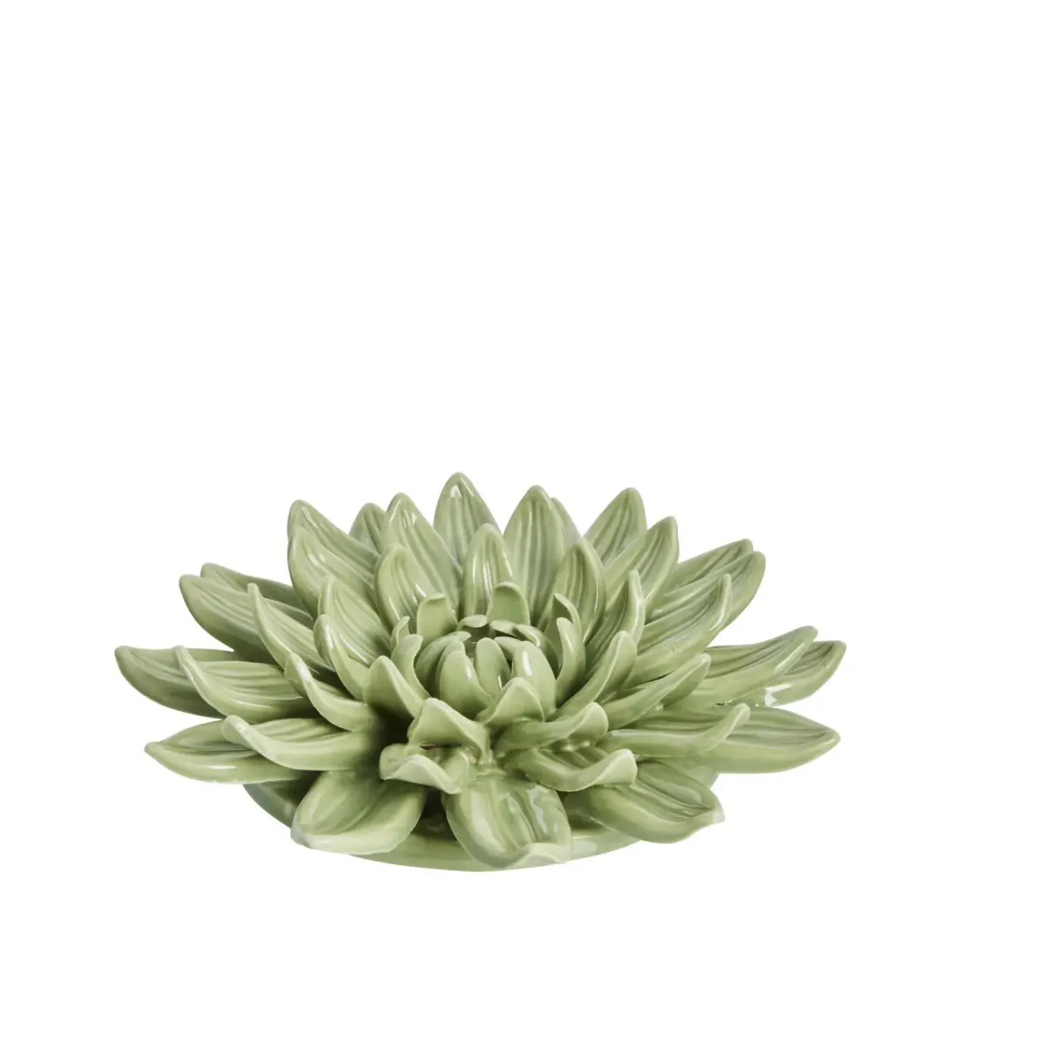 Smuk håndlavet Floria porcelænsvægblomst i farven støvet grøn, der måler 13X13 cm.