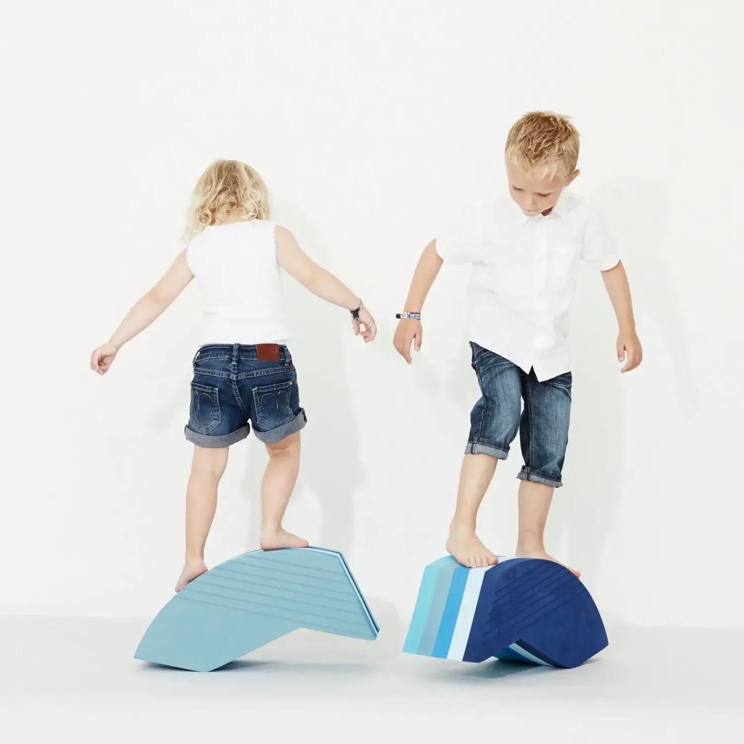 Produktet passer ind i moderne børnemiljøer, hvor funktionalitet og design går hånd i hånd. Den kompakte form gør det nemt at placere i børneværelset uden at fylde unødigt. Den blå farvegradient med striber tilføjer en visuel dimension, der appellerer til børn, mens designet inviterer til kreativ leg og udforskning af bevægelse.