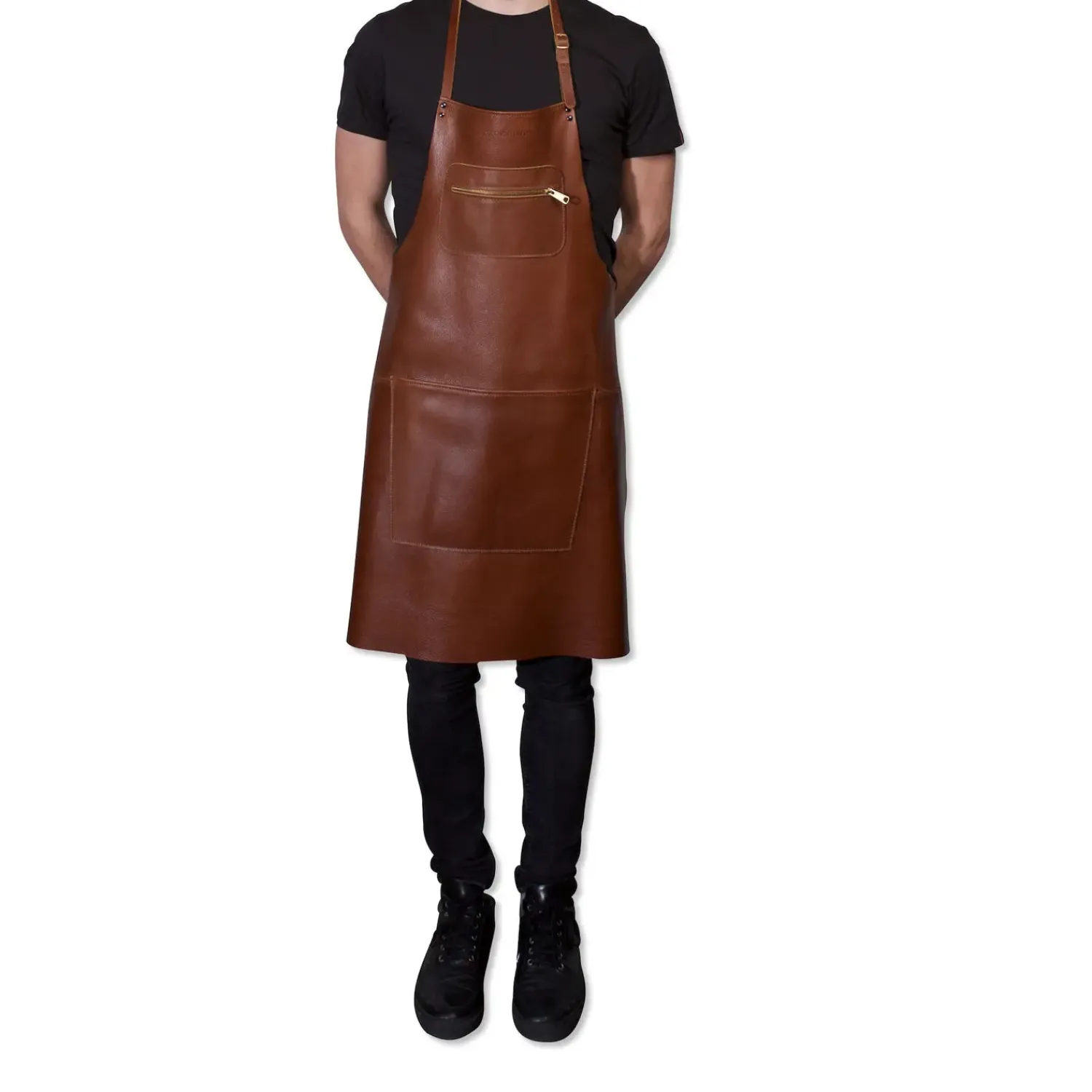 Det klassiske og detaljerede design kombineret med 100% fuldnarvet læder, der draperer, gør lynlåsforklædet elegant OG meget behageligt at have på. For alle med en passion for mad og design. Forklædet har en lille lomme på brystet, som kan lukkes med lynlås. Færdig med en transparent vandafvisende belægning, der gør den nem at rengøre med en våd klud. Bind stropperne på ryggen for at lukke forklædet, én størrelse forklæde passer til de fleste. Håndlavet i Holland af fuldnarvet læder. Regelmæssig brug og tidens gang vil skabe en patina, en blød glans, der udvikler sig på læderets overflade, da det er et naturprodukt, der ældes. Hvilket gør forklædet smukkere, jo mere du bruger det! Lavet af REACH-certificeret spaltlæder – fri for skadelige kemikalier. 100% fuldnarvet læder med REACH-certifikat – fri for skadelige kemikalier. Færdig med vandafvisende belægning. To lommer til opbevaring af genstande, den ene med lynlås. Fås i 2 farver; klassisk brun og sort.