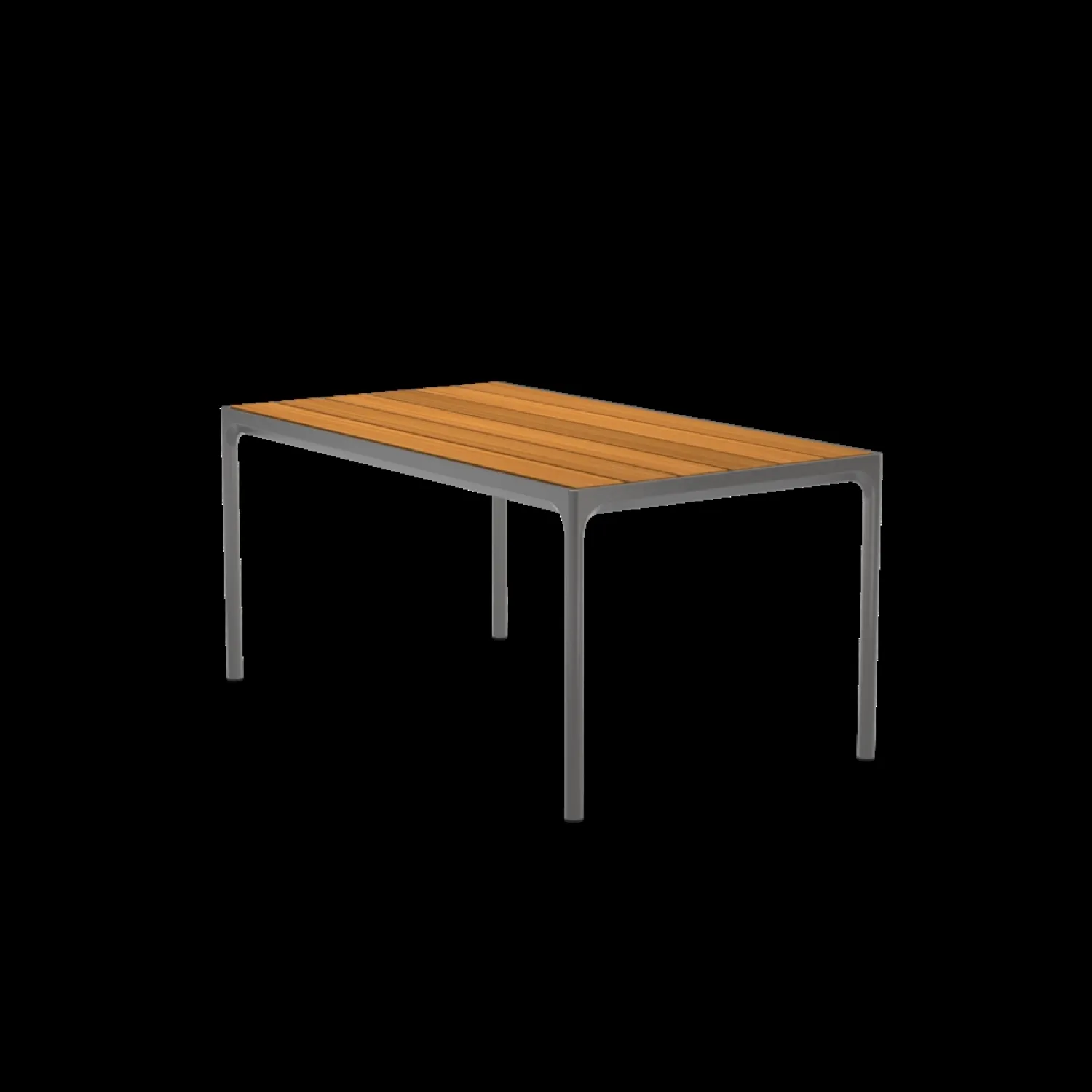 Et solidt udendørsbord med en specialudviklet metalramme, der sikrer stabilitet i alle vejrforhold. Den slanke grå profil kombinerer holdbarhed med et let udtryk, mens bordpladen med synlige lameller tilføjer karakter.