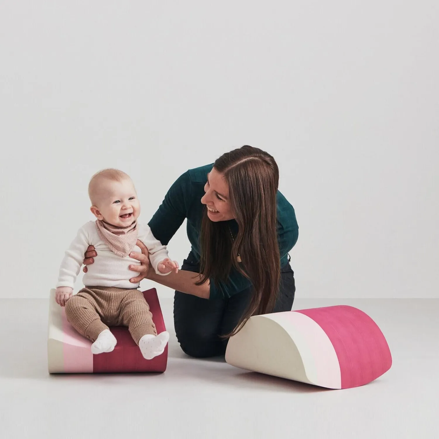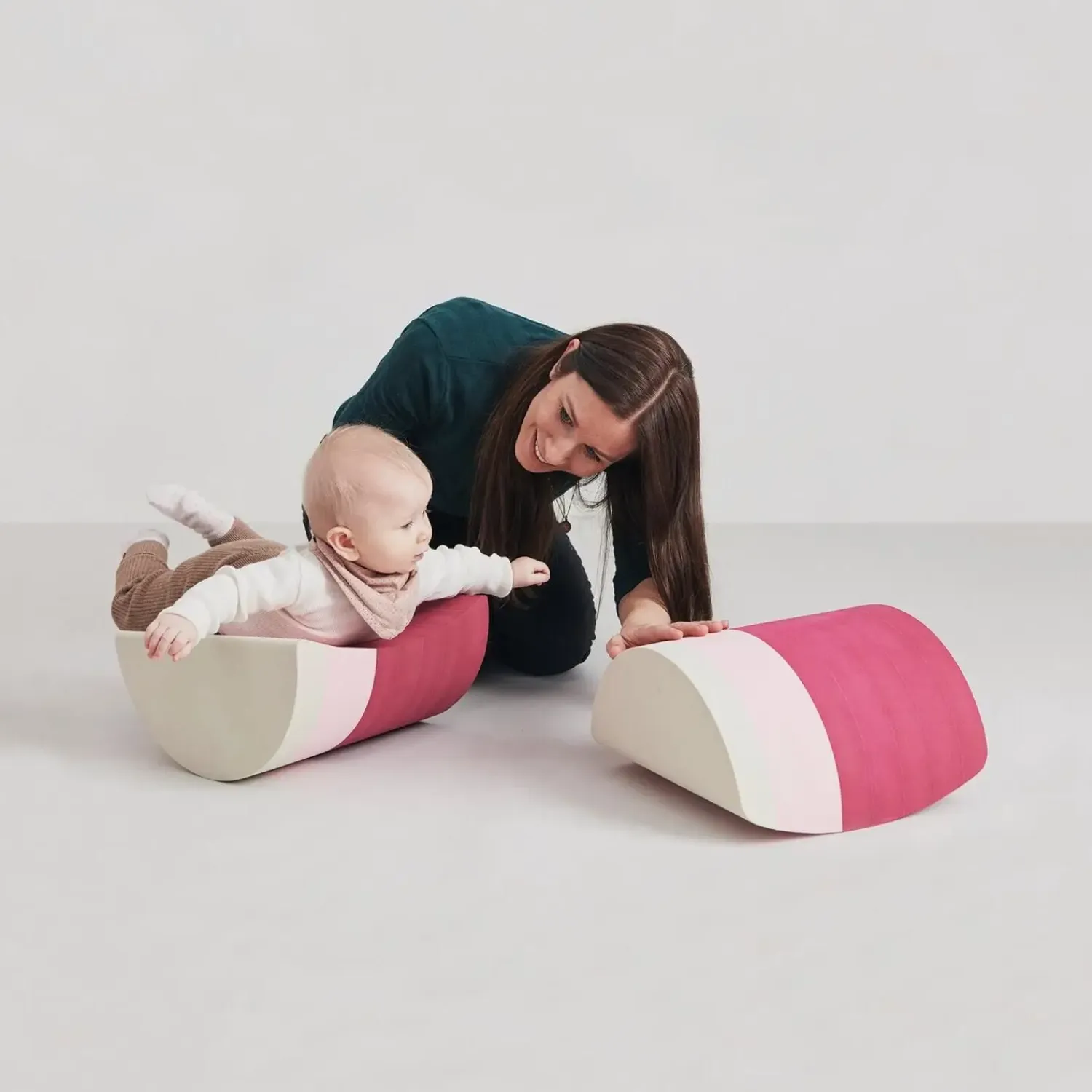 Bobles – Friends Rose består af to tumlemøbler i nuancer af rosa og beige, der stimulerer vestibulærsansen fra baby til barn. Vippefunktionerne understøtter motorisk udvikling og balance gennem aktiv leg, hvilket gør møblerne til en funktionel del af dit barns hverdag.