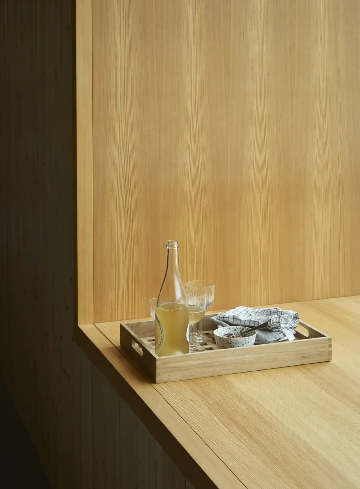 Den ikoniske Fionia-bakke fra Fritz Hansen er ideel til større serveringer, der skal transporteres fra køkkenet ud på terrassen eller ind i stuen til en hyggelig aften på sofaen. Bakken har håndtag skåret ud i enderne, hvilket gør den nem at håndtere og bære.