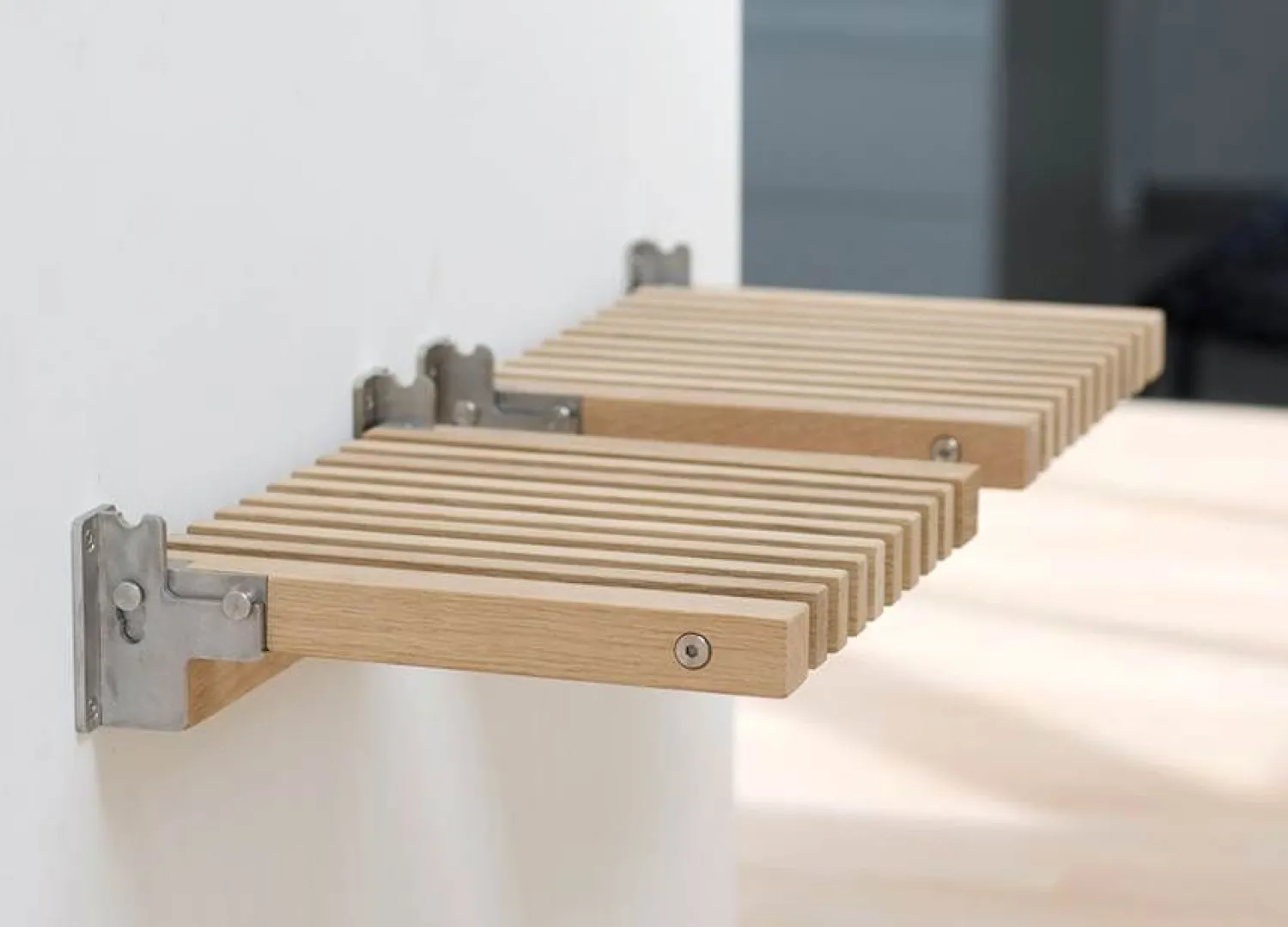 Hvis du mangler plads i entreen, badeværelset eller omklædningsrummet, giver dette klapsæde dig en siddeplads, der forsvinder, når du ikke bruger det. Når sædet foldes op, fylder det kun 9,5 cm fra væggen, så du kan bevæge dig frit i rummet.