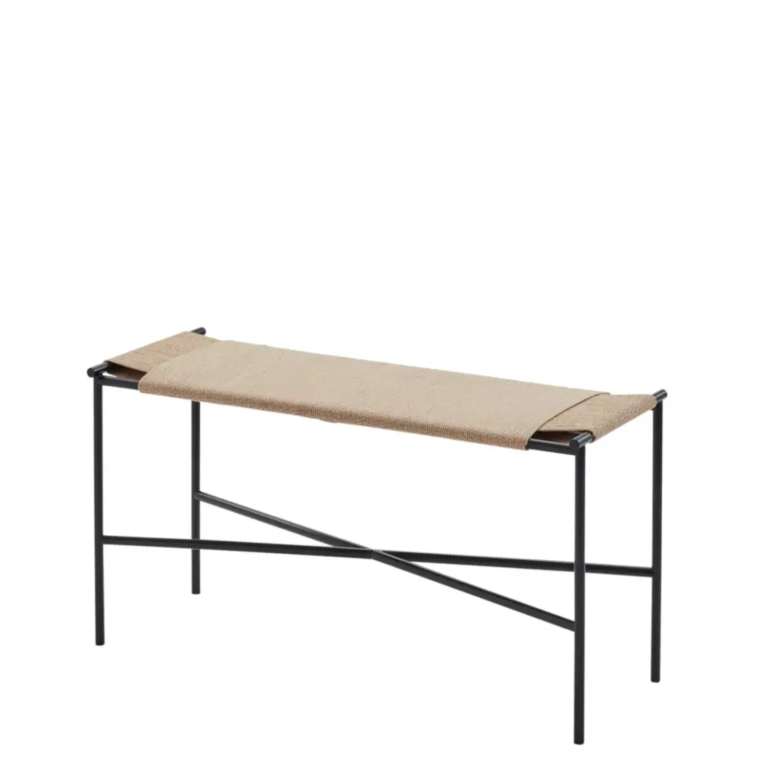 Hvis du søger en bænk, der ikke dominerer rummet, er dette et godt valg. Det minimalistiske design gør den alsidig og let at placere i forskellige rum. Den lyse beige farve på sædet fungerer både i neutrale og farverige indretninger, mens den sorte ramme tilføjer en diskret kontrast.