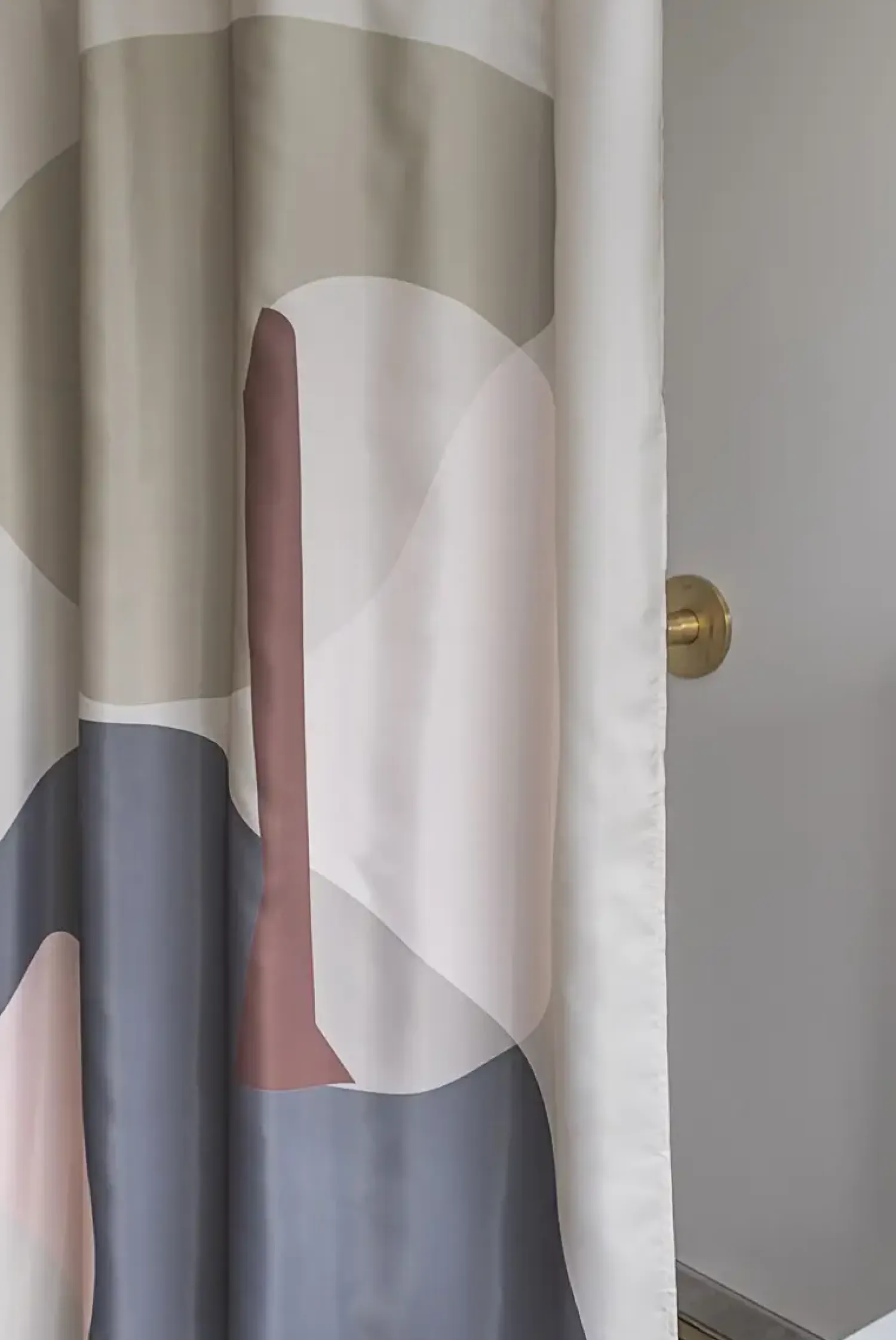 Badeforhænget er fremstillet i 100 % polyester og er skimmel- og vandafvisende.