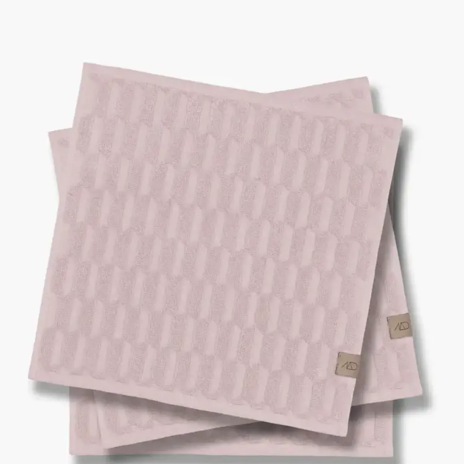 GEO er fremstillet med en ”høj-lav” væveteknik, hvor designets sekskantede form deles i to halvdele. Det giver et næsten tredimensionelt, grafisk mønster med en lys og en mørk halvdel. Til serien fås også matchende håndklæder i tre størrelser samt bademåtten. GEO er fremstillet i OEKO-TEX® 100-certificeret bomuld, med en lav tæt luv, som gør minihåndklædet både meget absorberende og yderst slidstærkt. Sælges i pakker á 3. stk.