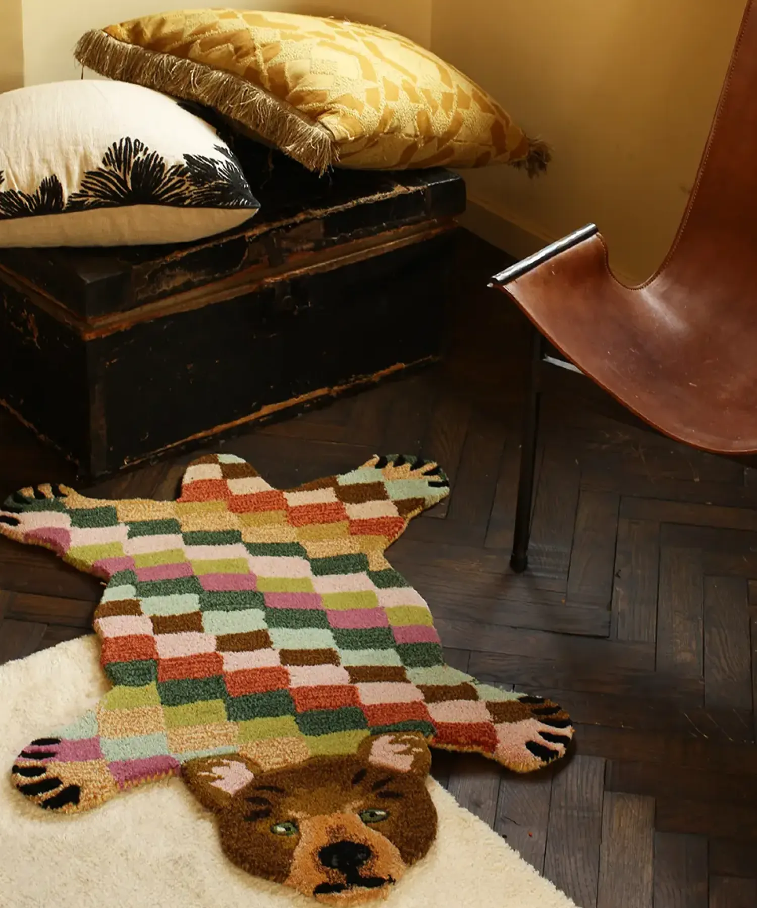 Super fint og sødt bjørne gulvtæppe fra Doing Goods. Tæppet er håndlavet af 100% uld, hvilket gør hvert enkelt tæppe helt unikt. Placer tæppet hvor som helst i hjemmet, brug det eksempel foran pejsen i stuen eller på gulvet i børneværelse. Tæppet kan også hænges op på væggen.