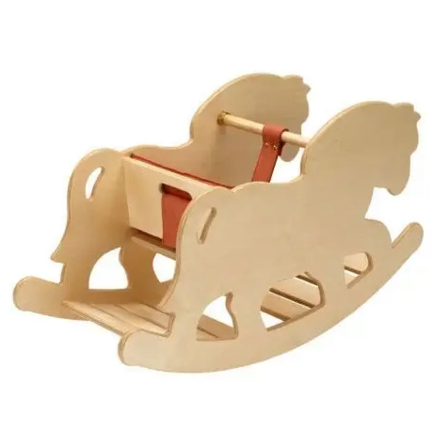 Gyngehest i birk med rustrød hynde fra HINDEVADGÅRD