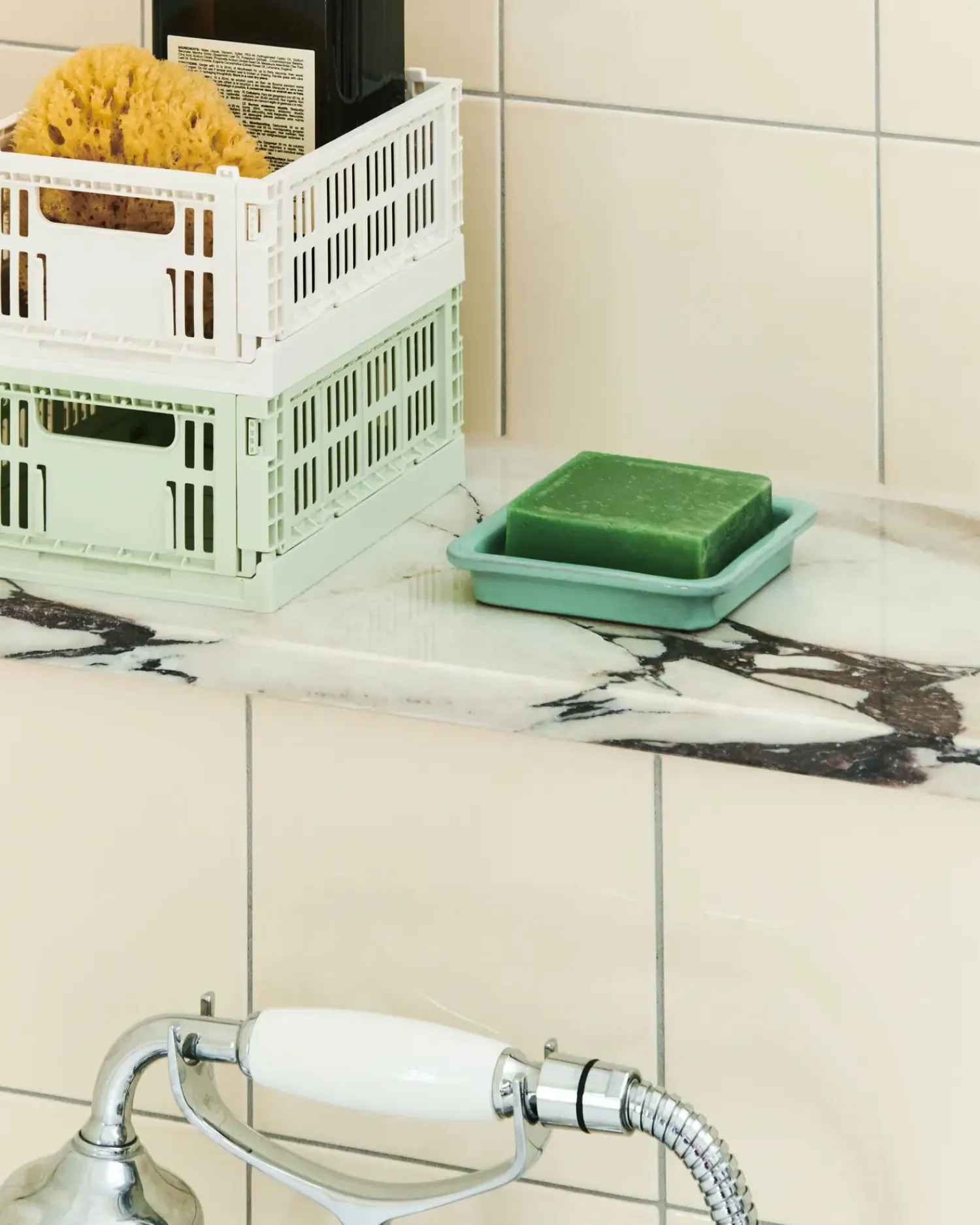 Den kompakte størrelse gør sæben ideel til små badeværelser eller køkkener, hvor pladsen er begrænset. Den blå farve og det enkle design passer harmonisk ind i de fleste indretningsstile. Du får en håndlavet sæbe, der ikke kun plejer dine hænder, men også bidrager til et rent og indbydende look i dit badeværelse.