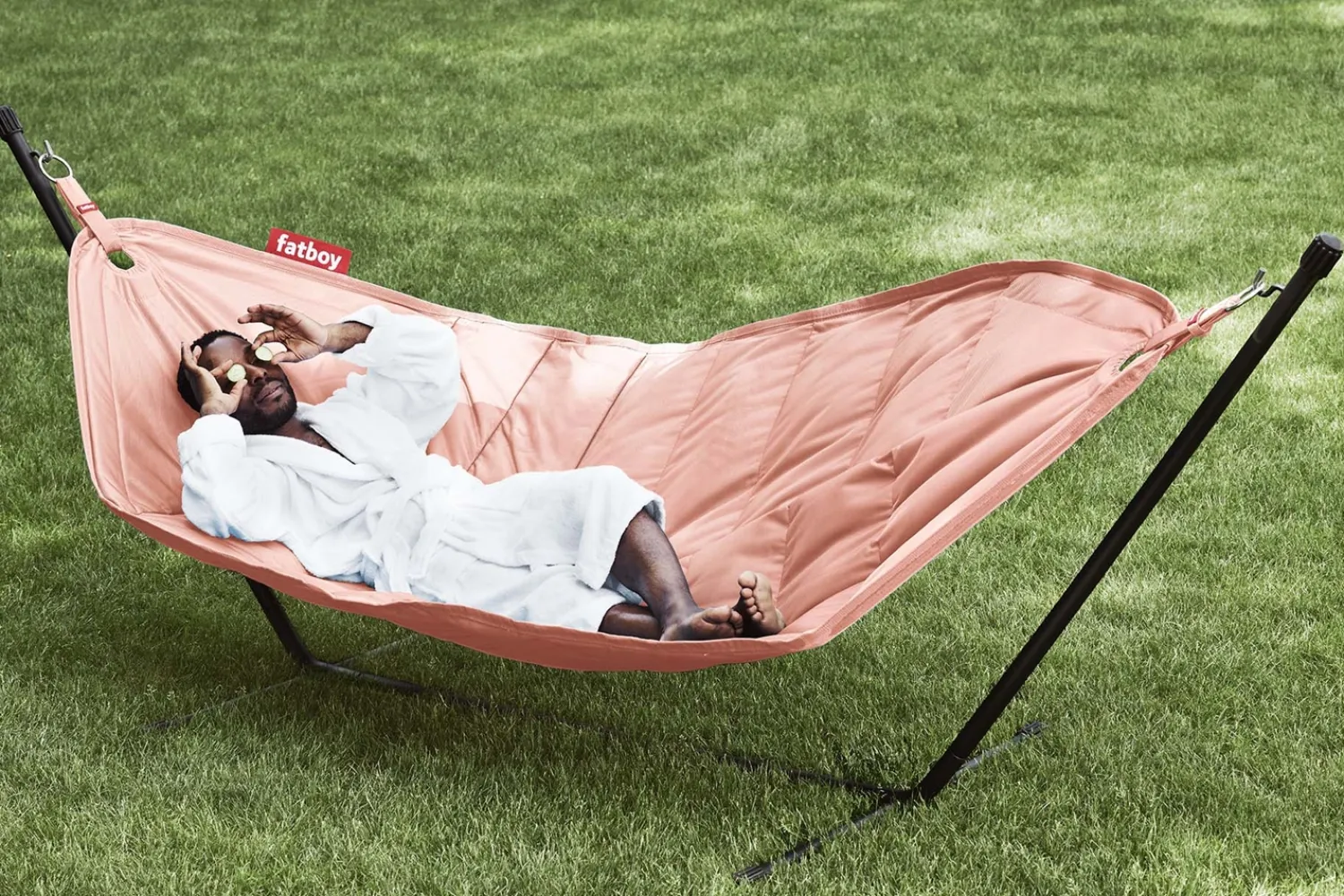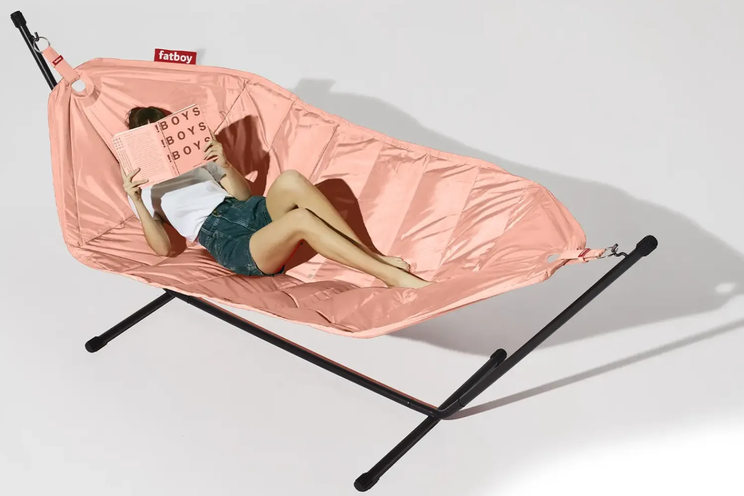 Fatboy hængekøje Deluxe – Pink Shrimp tilbyder en innovativ løsning til udendørs afslapning med sin selvstændige konstruktion. Denne hængekøje kræver hverken træer eller reb takket være dens særlige design, så du kan nyde komfort hvor som helst i din have eller på terrassen.