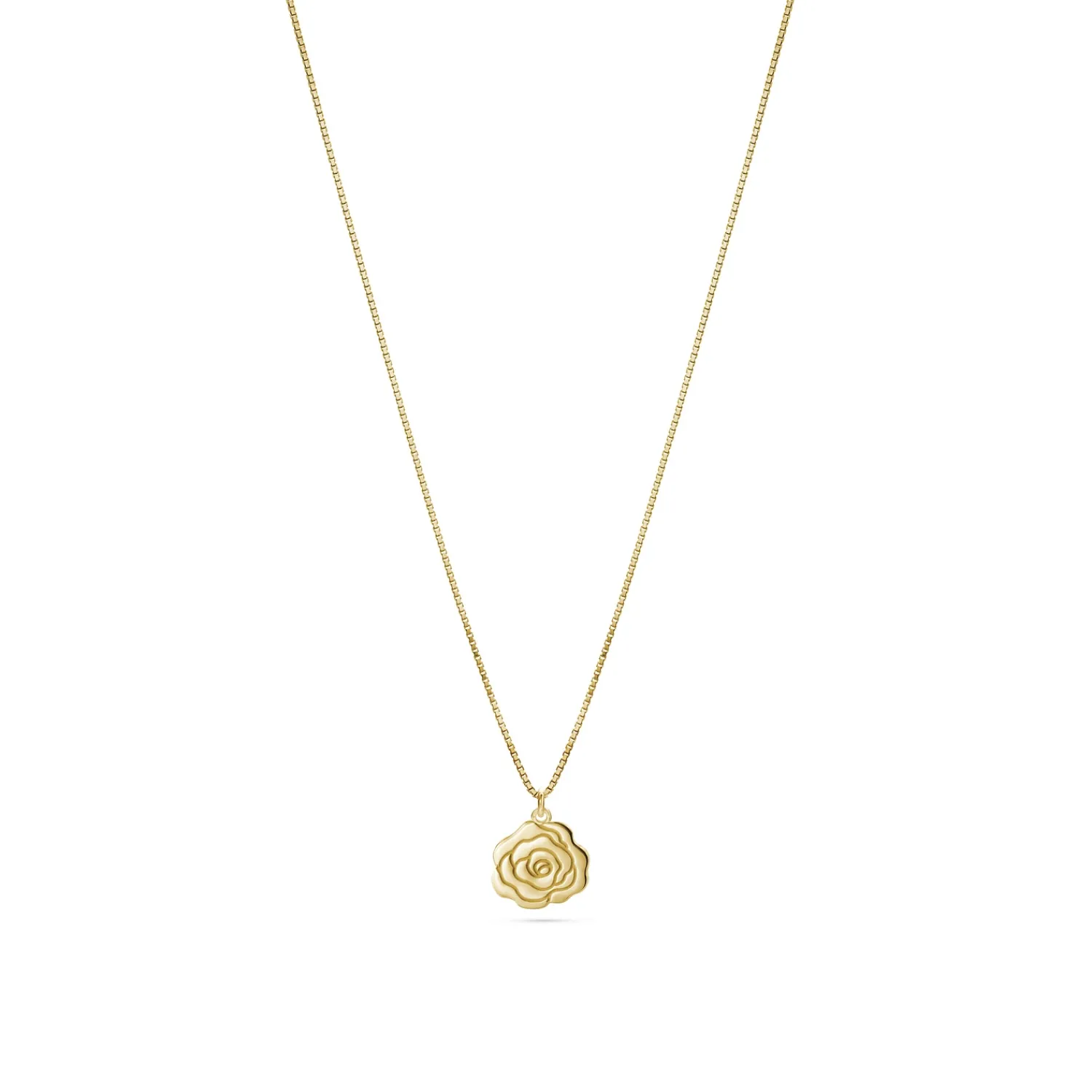 Den smukke halskæde er en del af Rose kollektionen, der er en fejring af nostalgi og en hyldest til minderne med den klassiske rose som et stilbillede af gyldne og dyrebare øjeblikke.