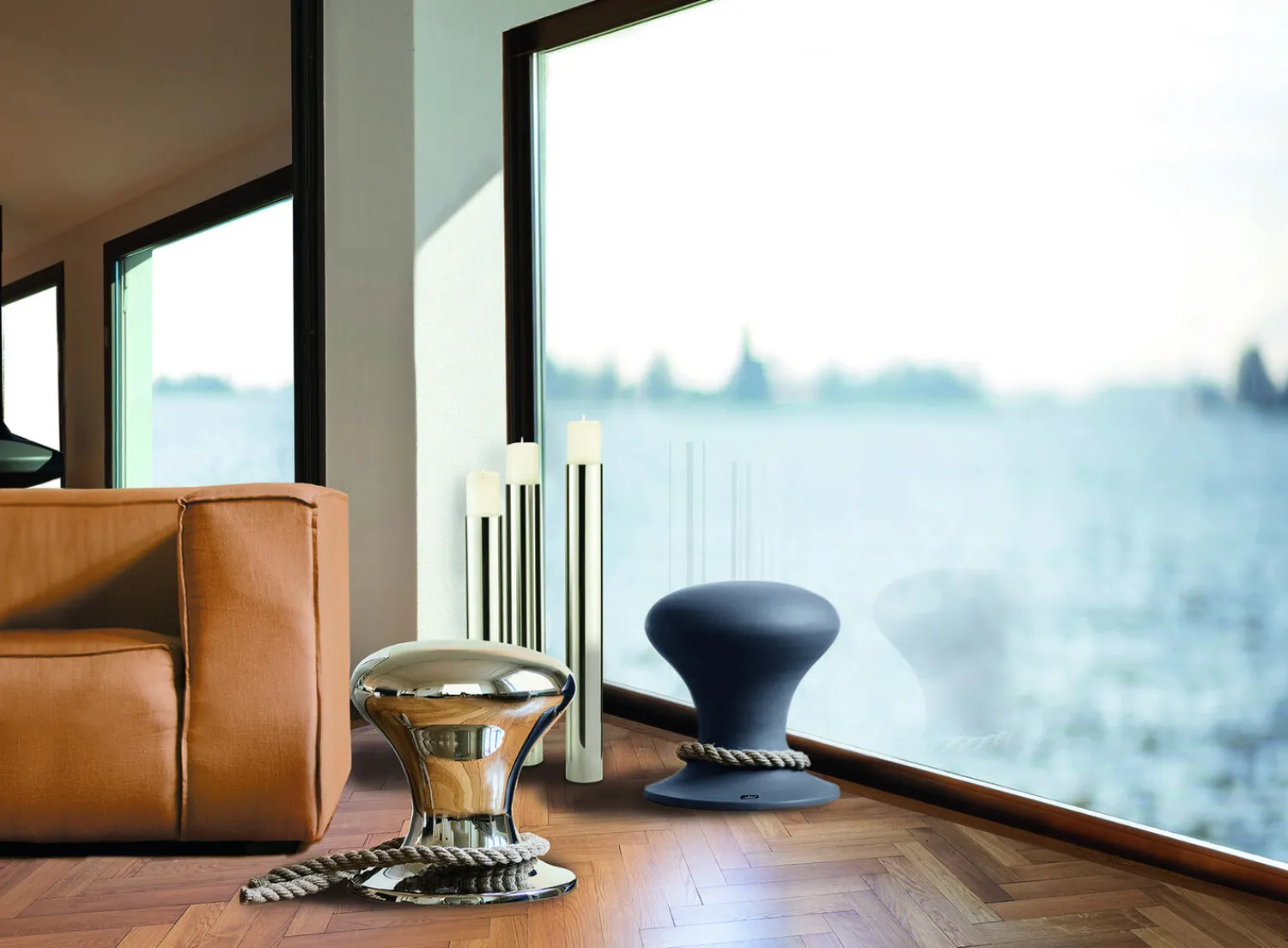 Moderne og minimalistisk skammel i aluminium