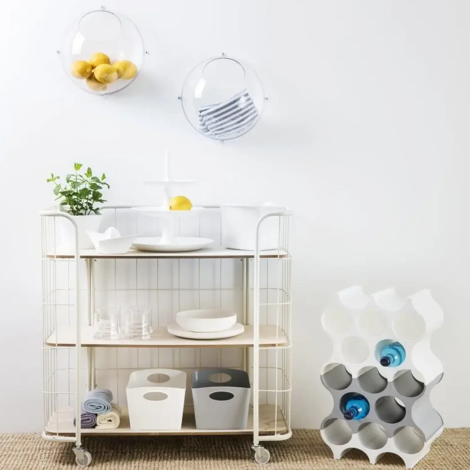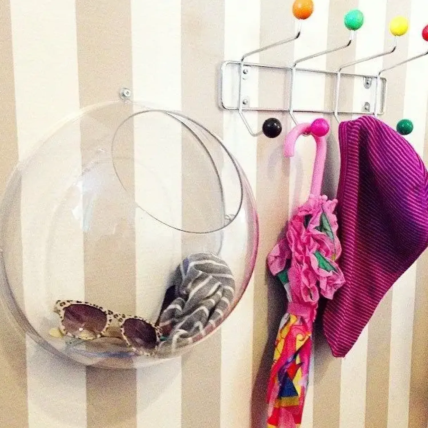 Brug den fx i gangen eller som opbevaring af børnenes legetøj på værelset. Hæng også de smarte vægkugler som en hel kugle rundt omkring i boligen.