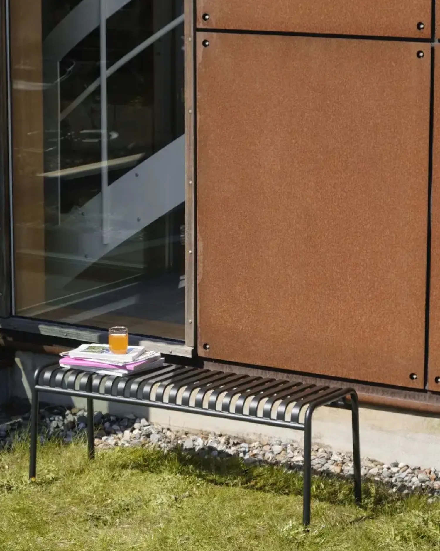 HAY havebænk – Palissade bænk – 120 cm – Anthracite er en del af HAYs Palissade-serie, designet til udendørs brug. Denne bænk er velegnet til haven, terrassen eller altanen. Den elegante anthracite-farve giver bænken et sofistikeret og tidløst udseende, der harmonerer med forskellige udendørs stilarter.