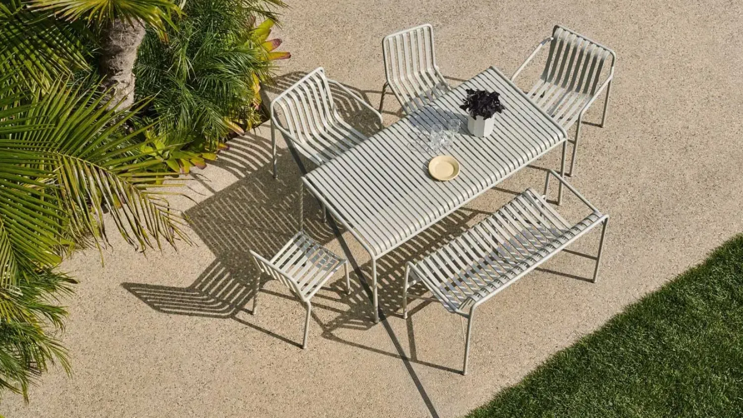 HAY havebænk – Palissade spisebordsbænk i lysegrå